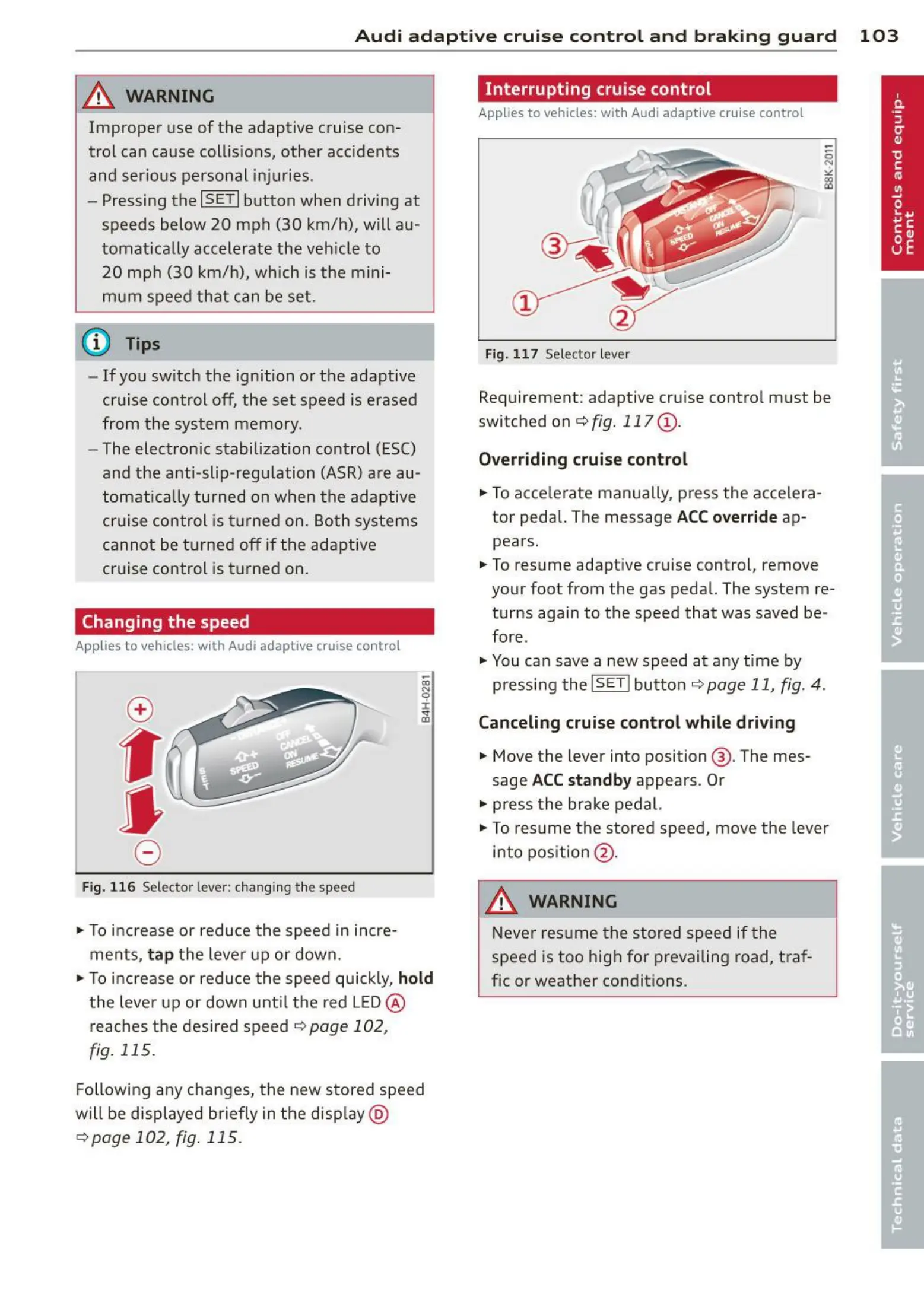 Audi a dapt ive crui se control an d b ra kin g guard 10 3