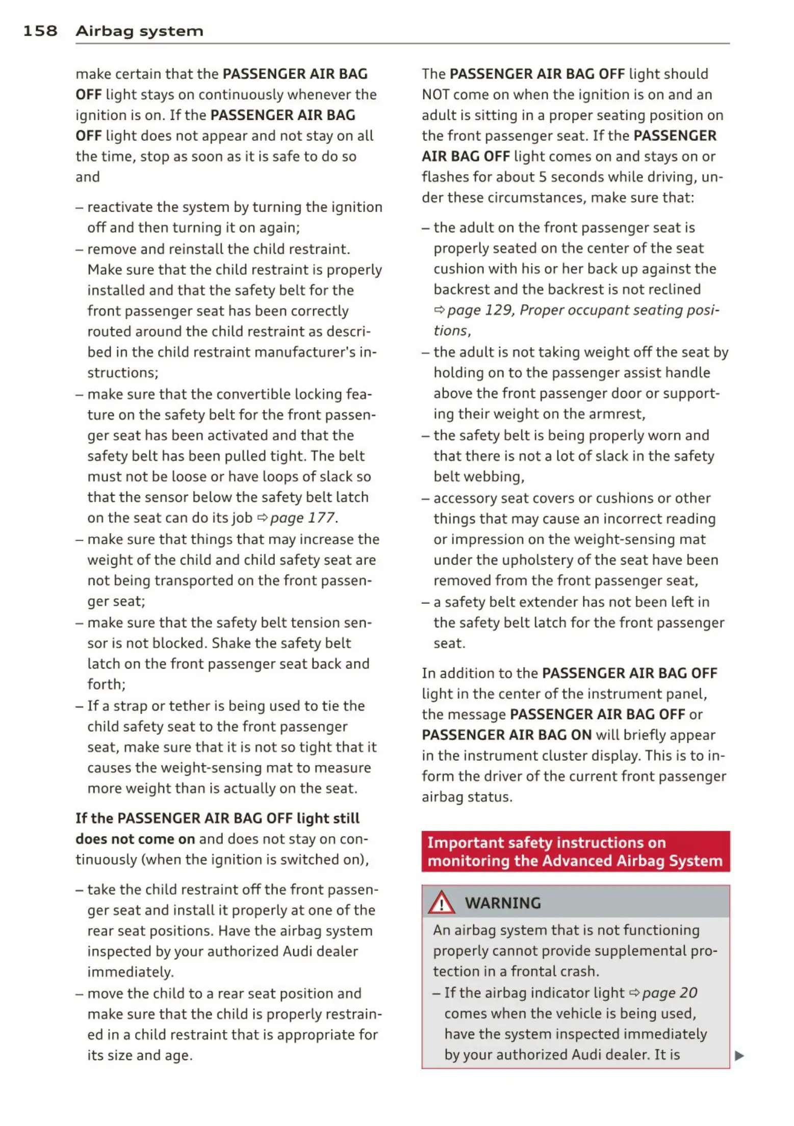 158 Airb a g sys t e m