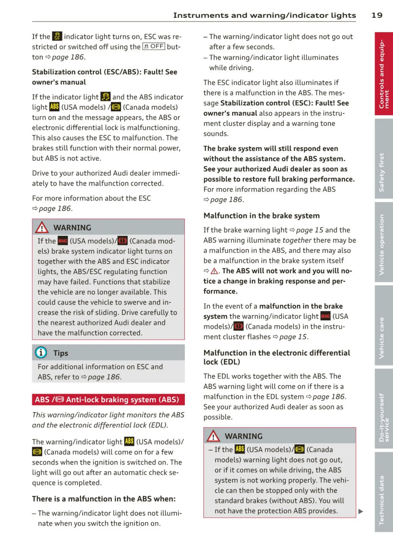 lights, the ABS/ESC regulating function