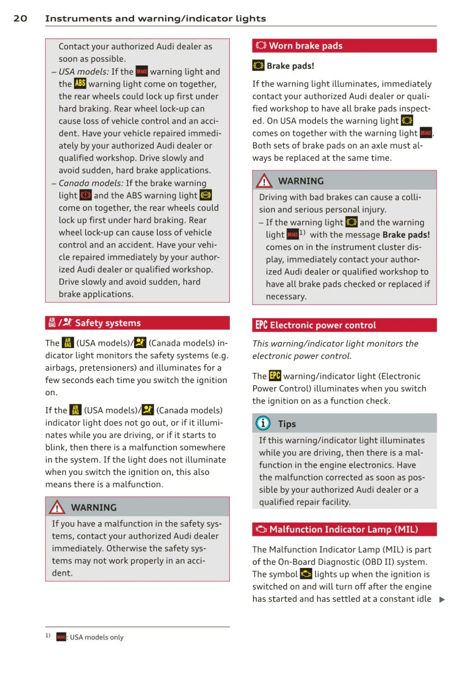 20 In st rum e nt s a nd w a rn in g/i ndic at o r light s