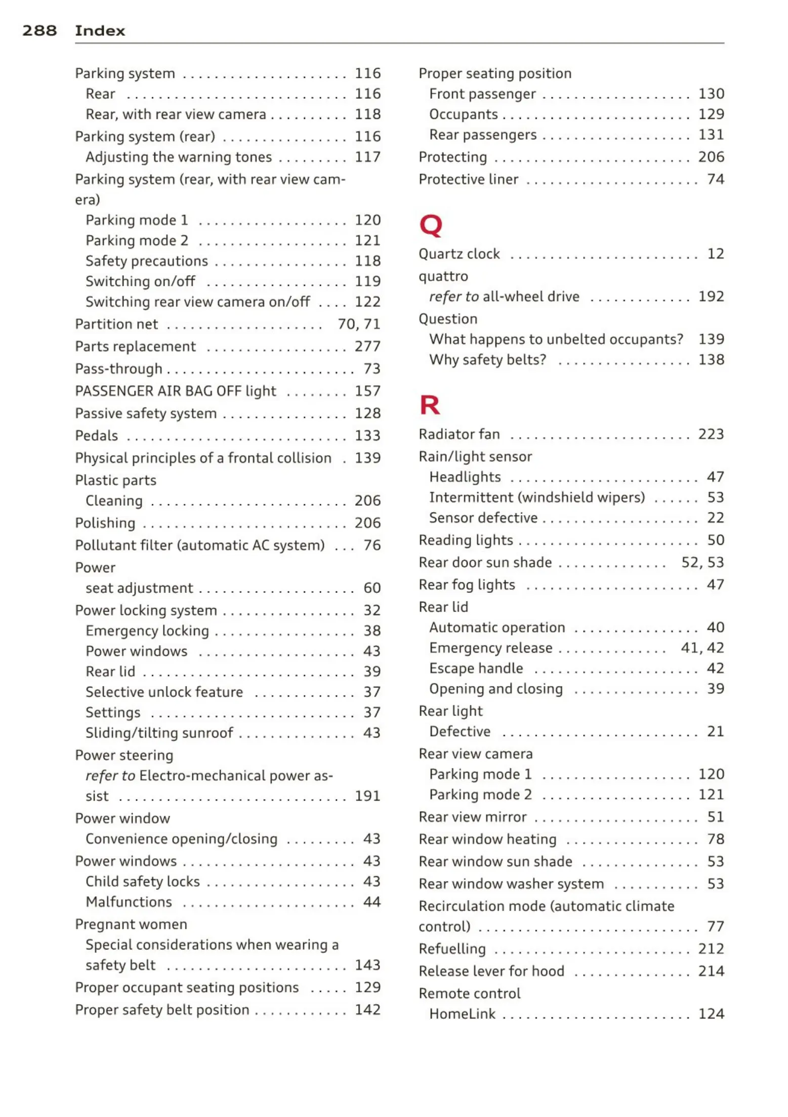 Parking system (rear) ..... . . . . . . . . . . . 116