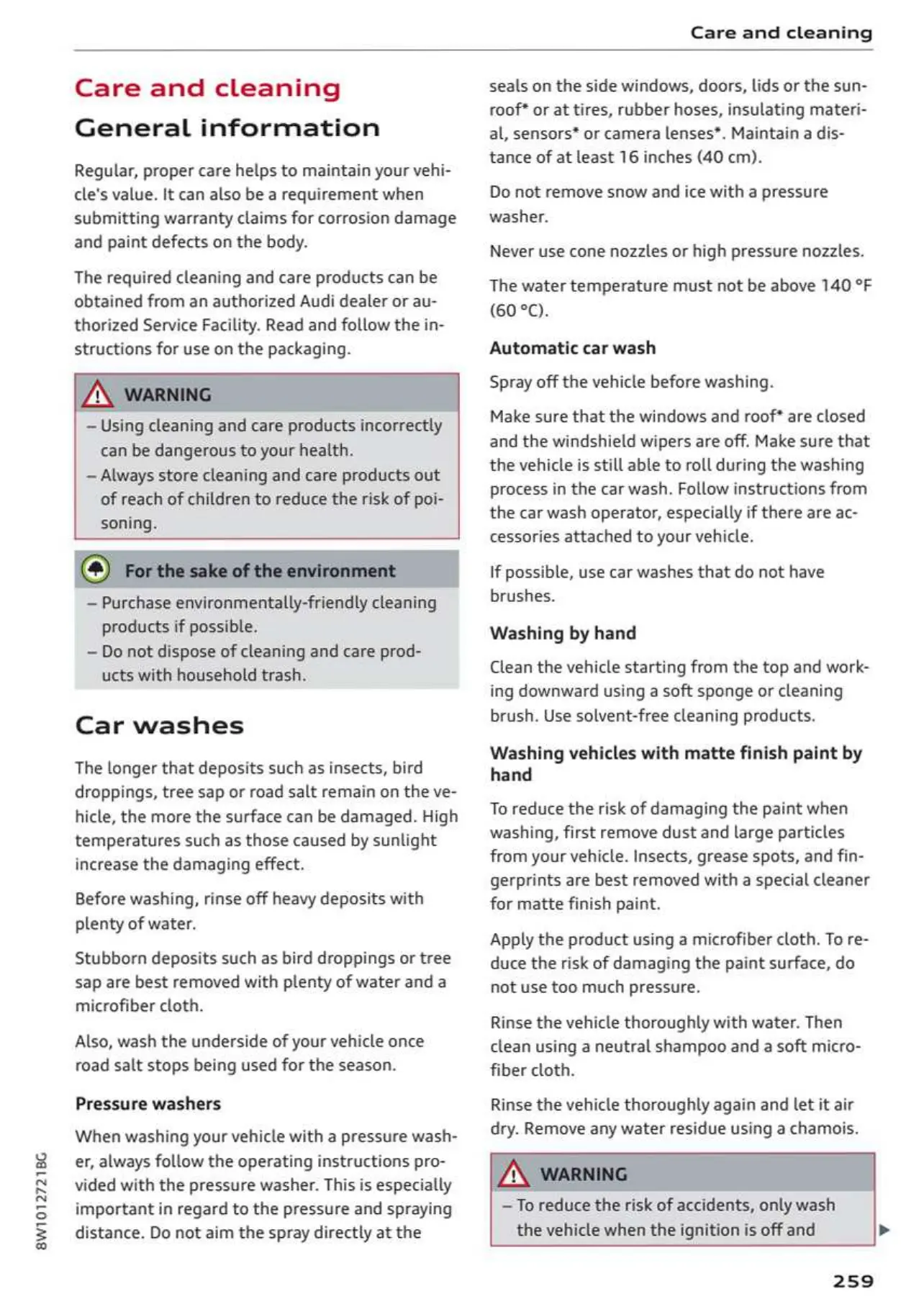 Audi A4 2023 - Care and Cleaning; General Information; Car Washes