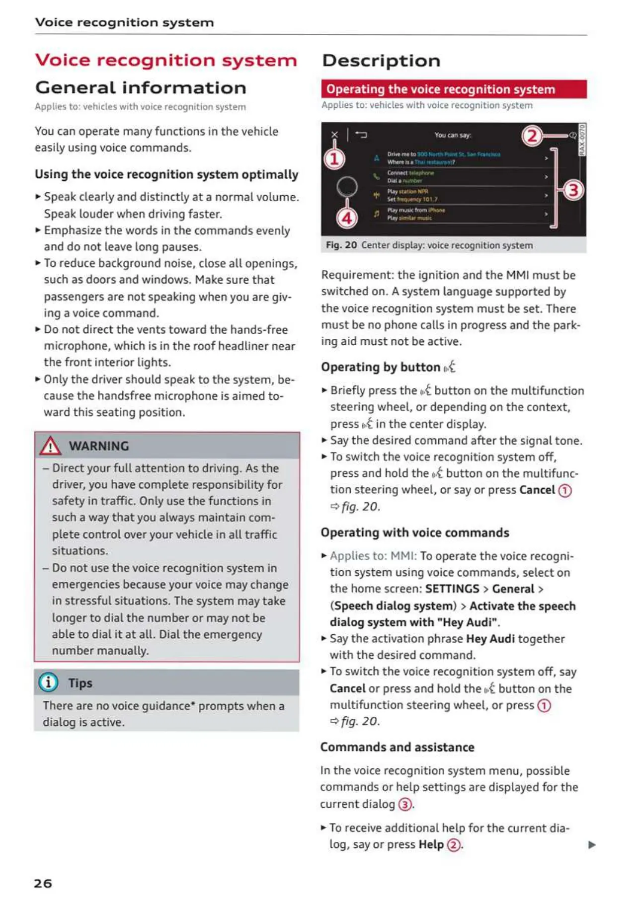 Audi A4 2023 - Voice Recognition System; General Information; Description