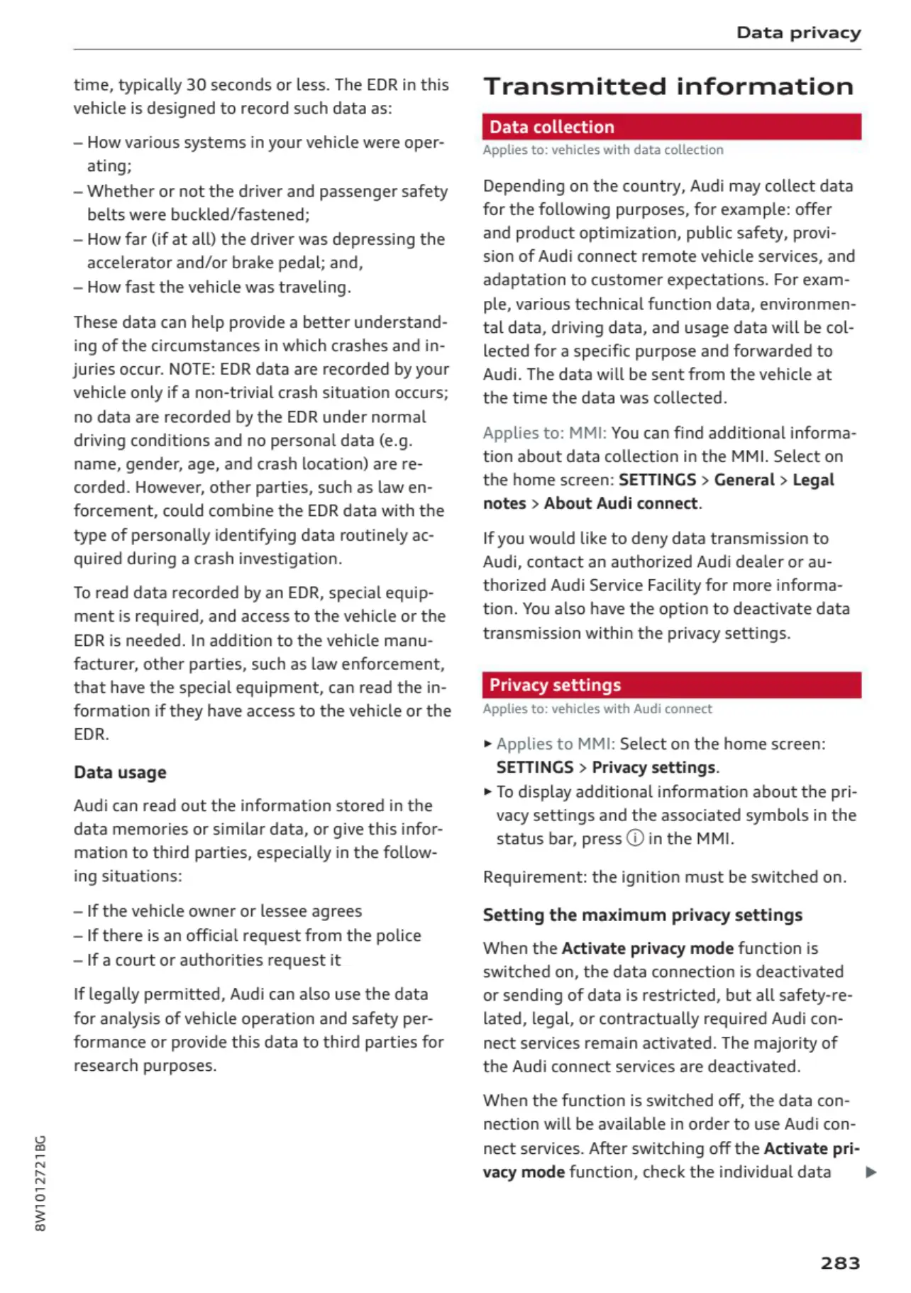 Audi A4 2023 - Transmitted Information
