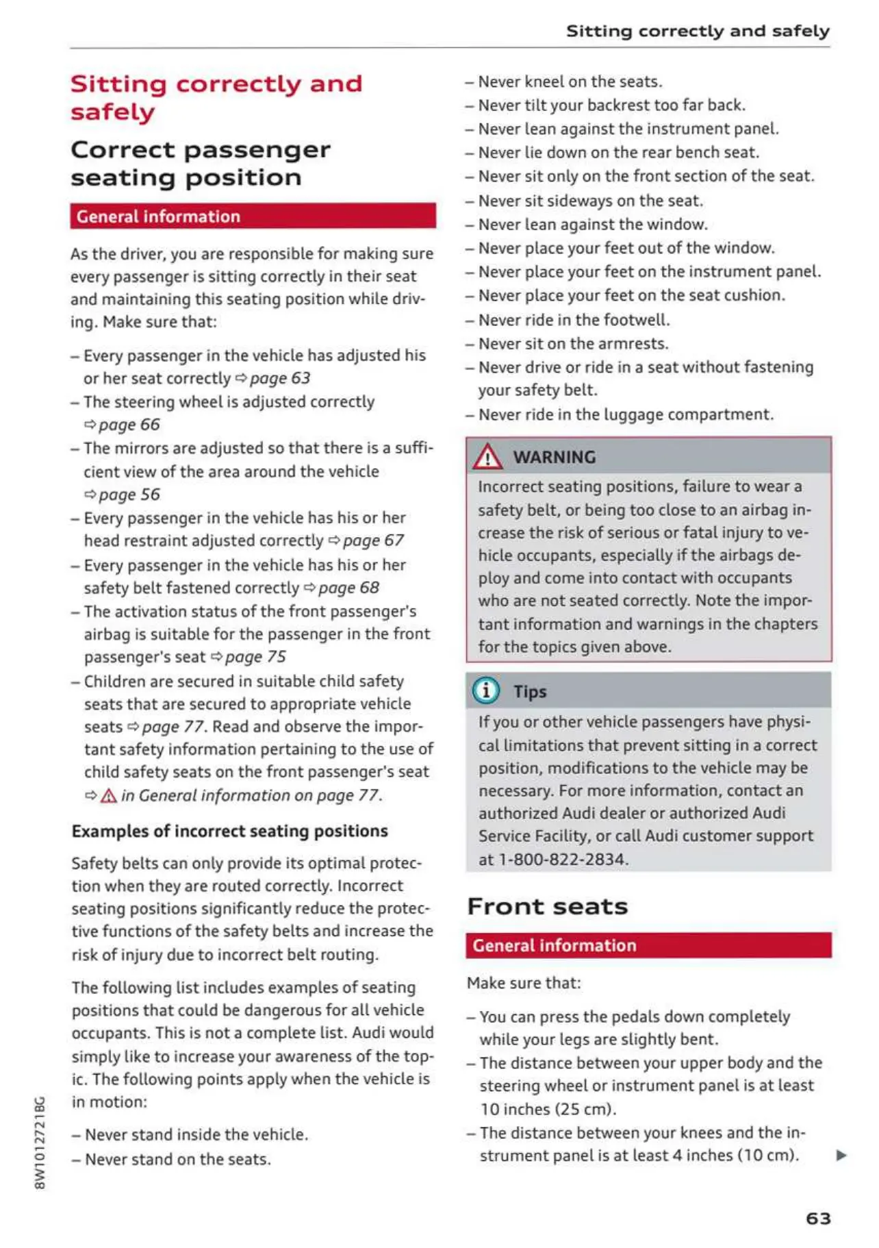 Audi A4 2023 - Sitting Correctly and Safely; Correct Passenger Seating Position; Front Seats