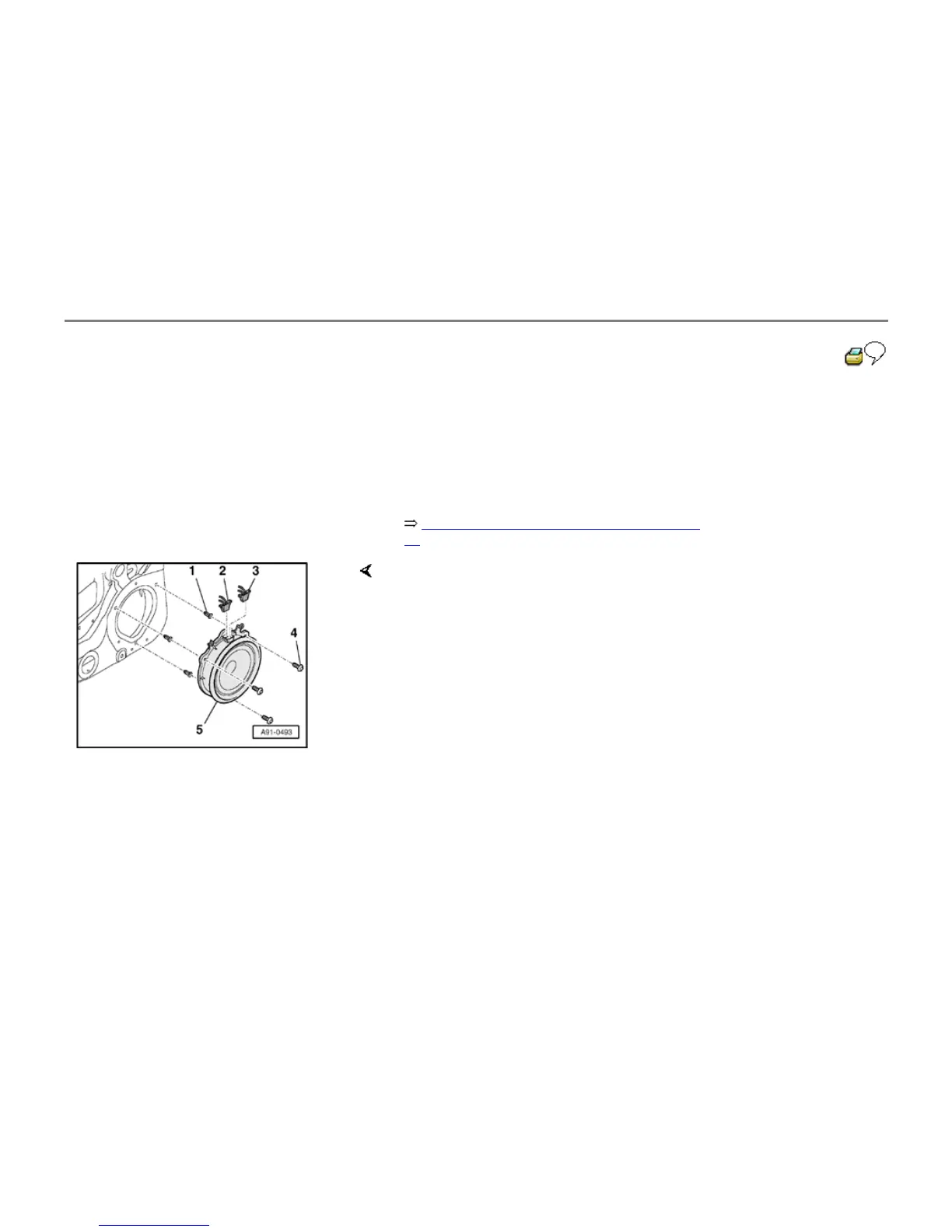 - Remove bolts -4- on loudspeaker -5- and remove loudspeaker.