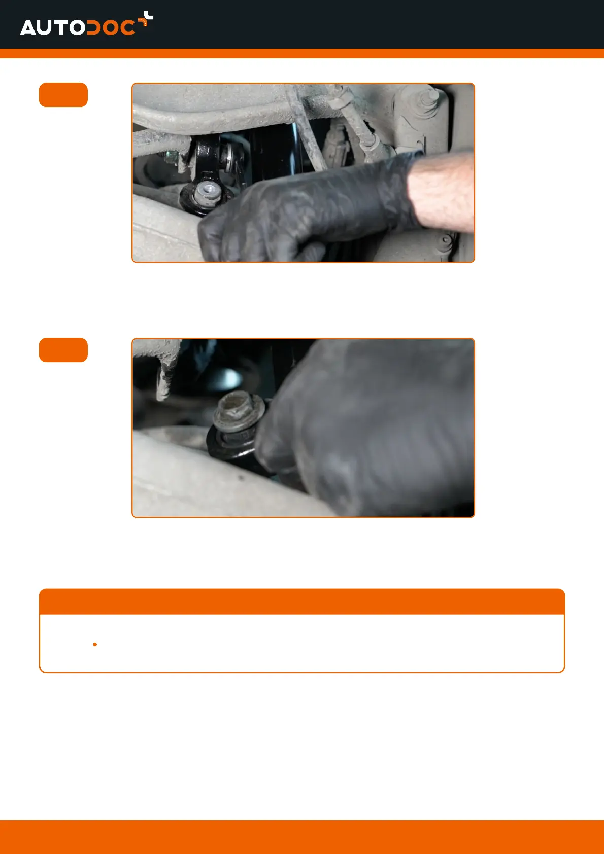 Unscrew the fasteners connecting the stabiliser link to the stabiliser bar. Use a combination