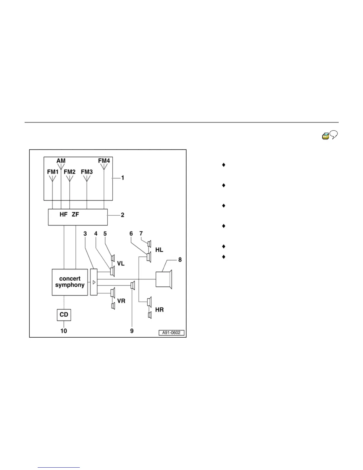 Audi A4 Cabriolet 2004 - 6 - Rear Bass Speakers; 7 - Rear Midrange Speakers; 8 - Bass Loudspeaker; 9 - Center Mid;High Range Loudspeaker