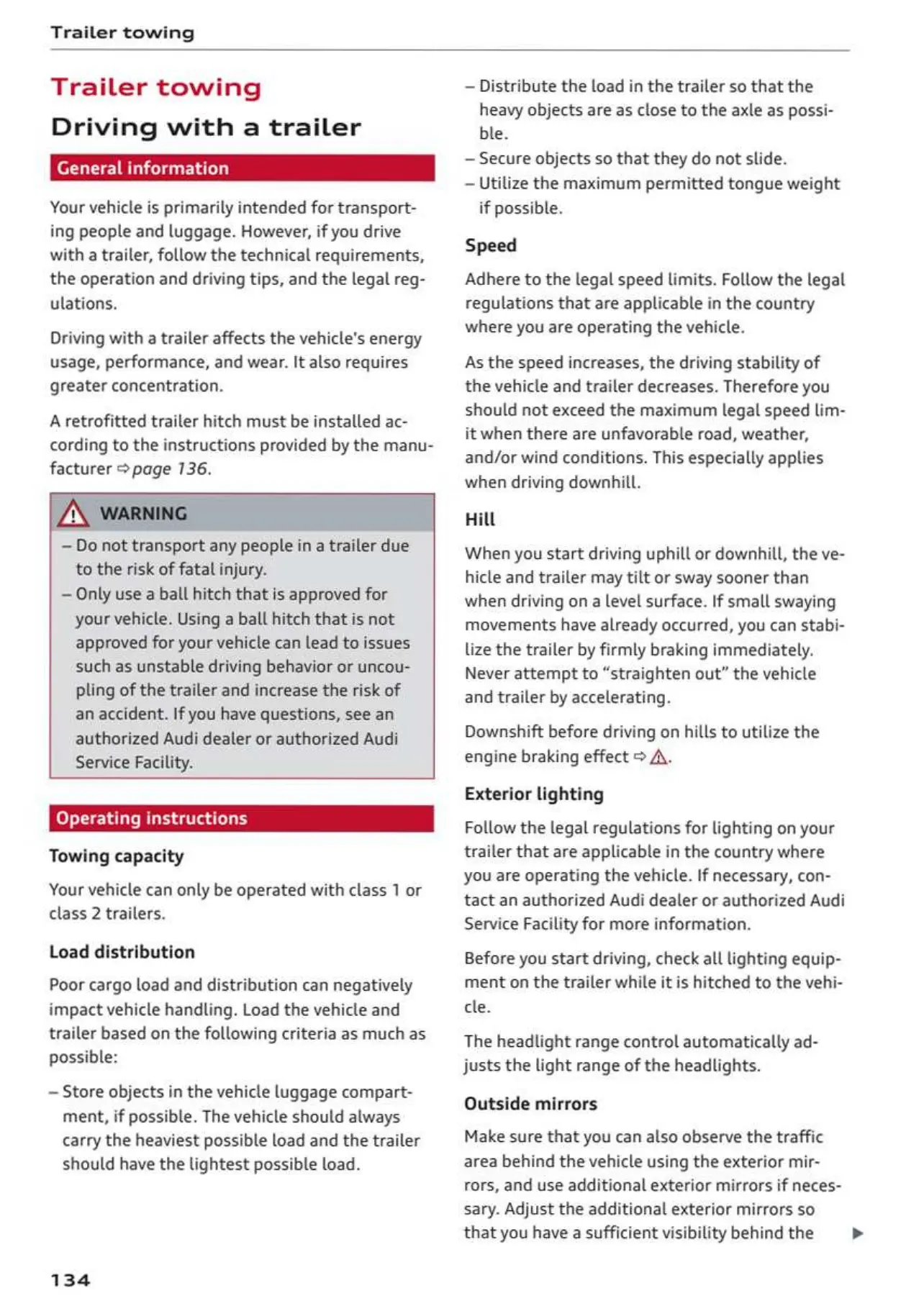 Audi A5 2024 - Trailer Towing; Driving with a Trailer