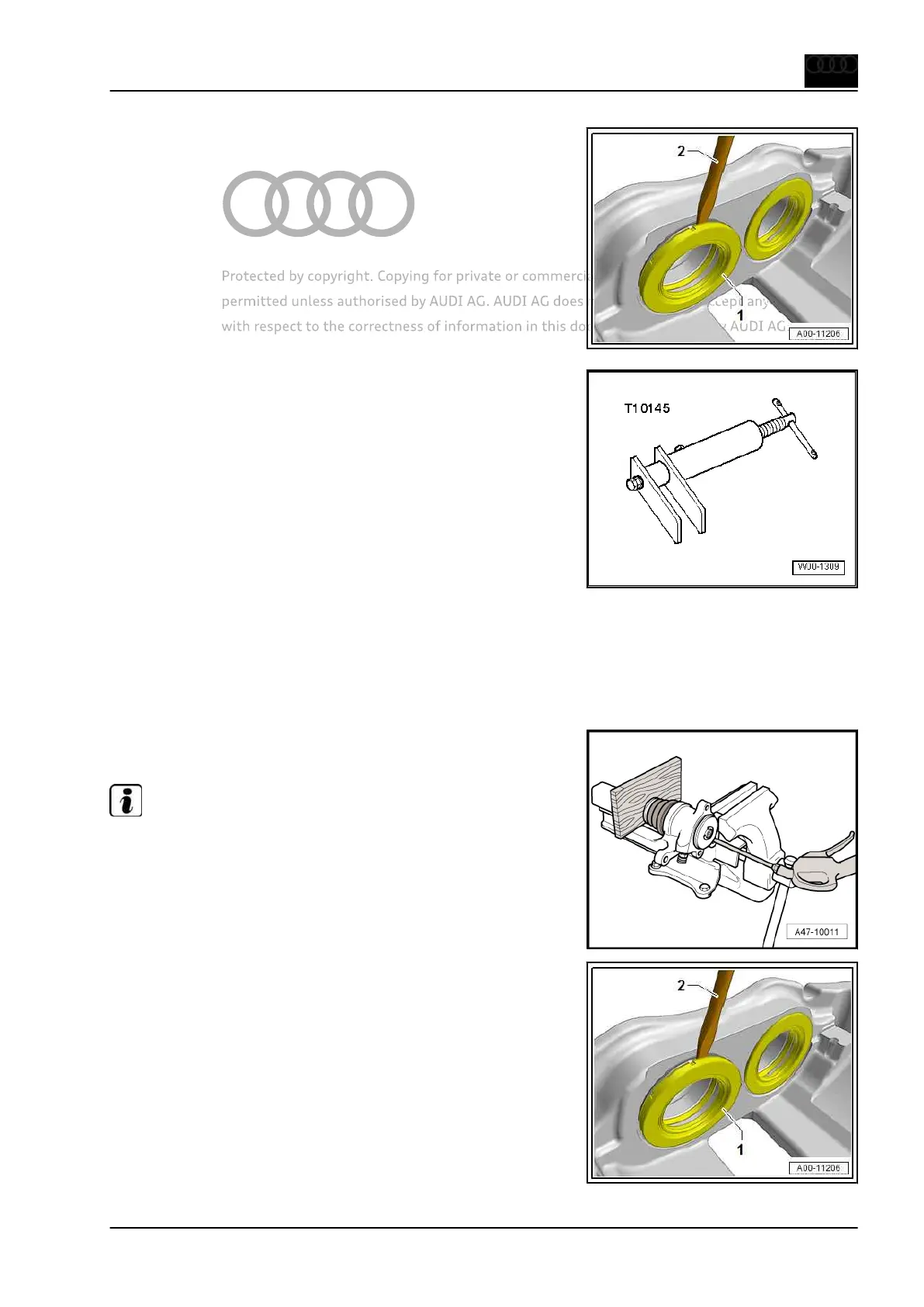 – Carefully lever protective cap -1- and seal out of brake caliper