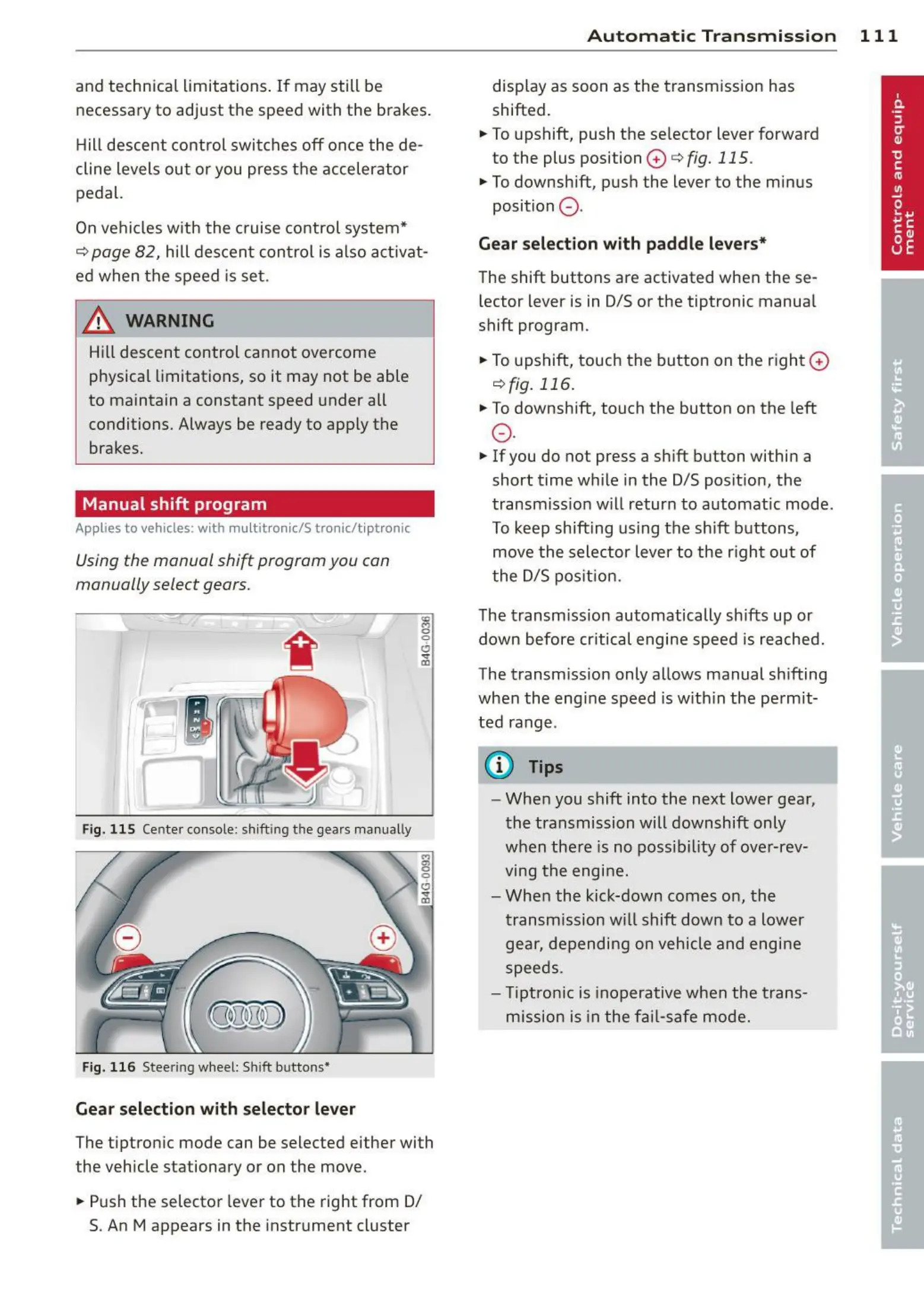 lector lever is in D/S or the tiptronic manual