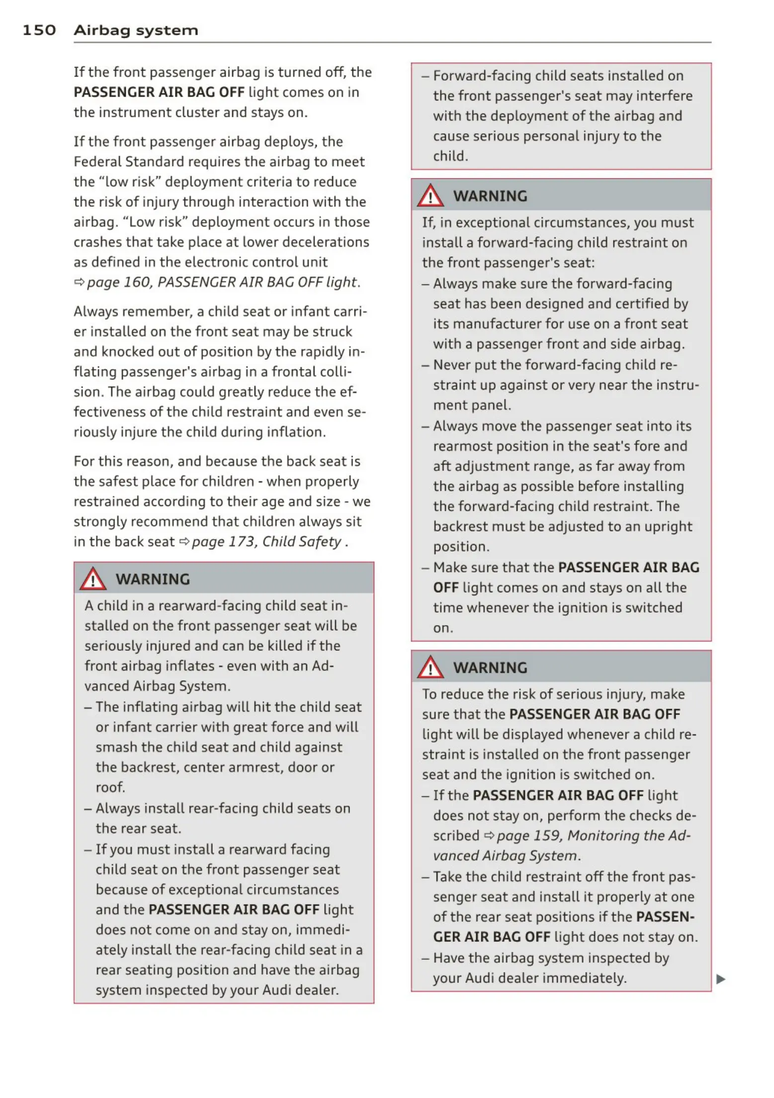 150 Airb a g sys t e m