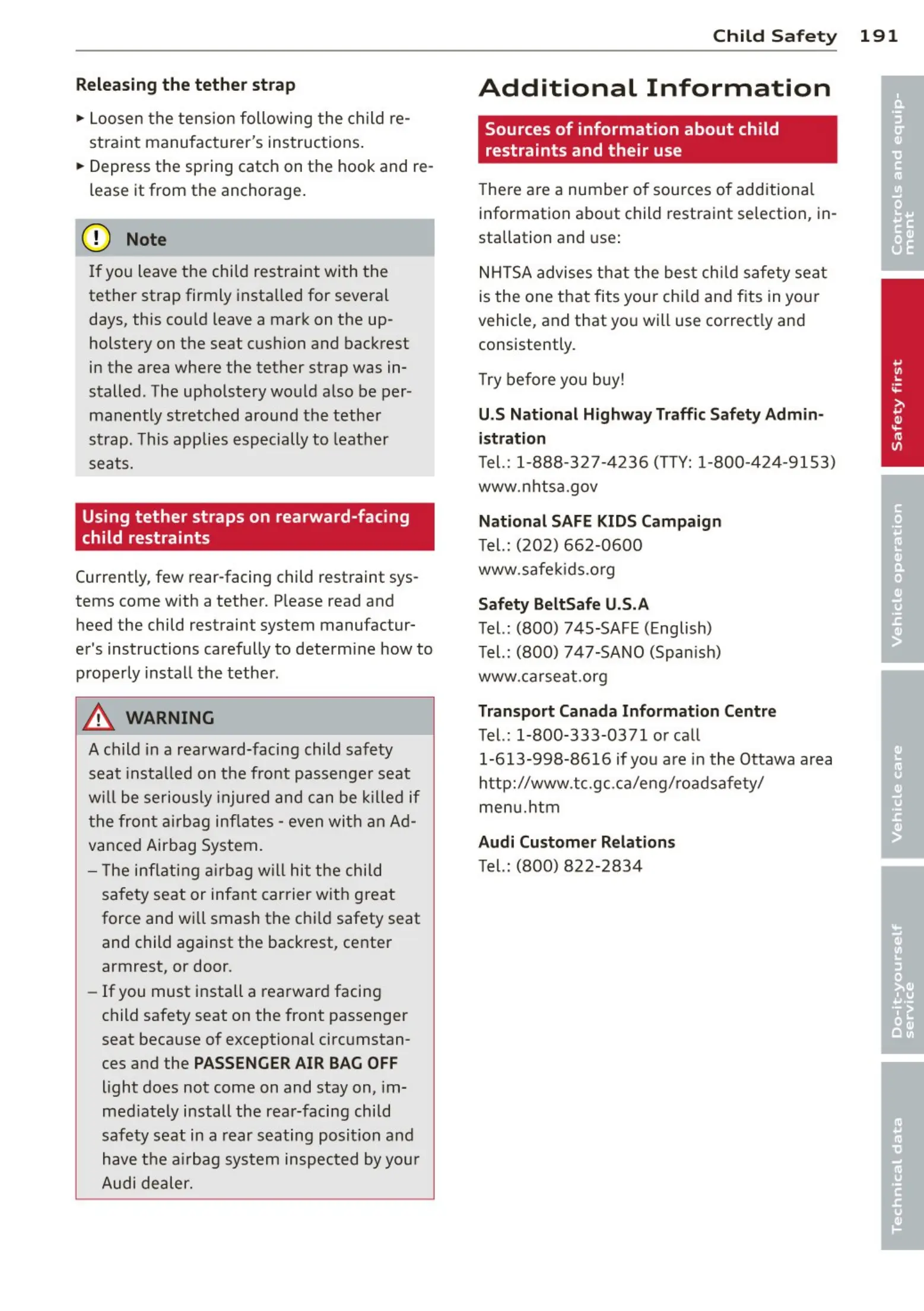 NHTSA advises t hat t he bes t ch ild safety seat