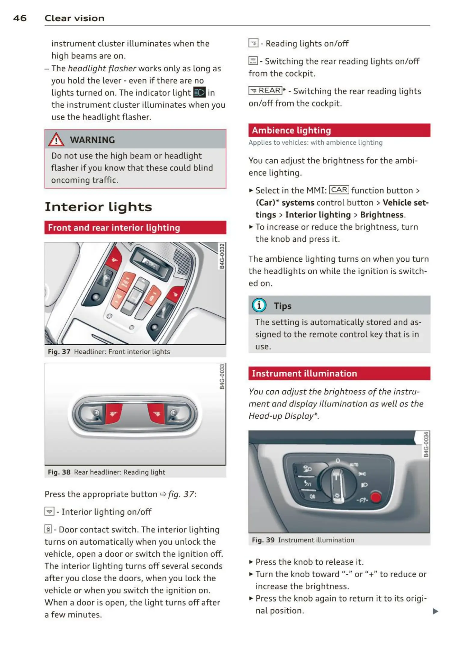 Fig. 37 Headliner: Front interior lights
