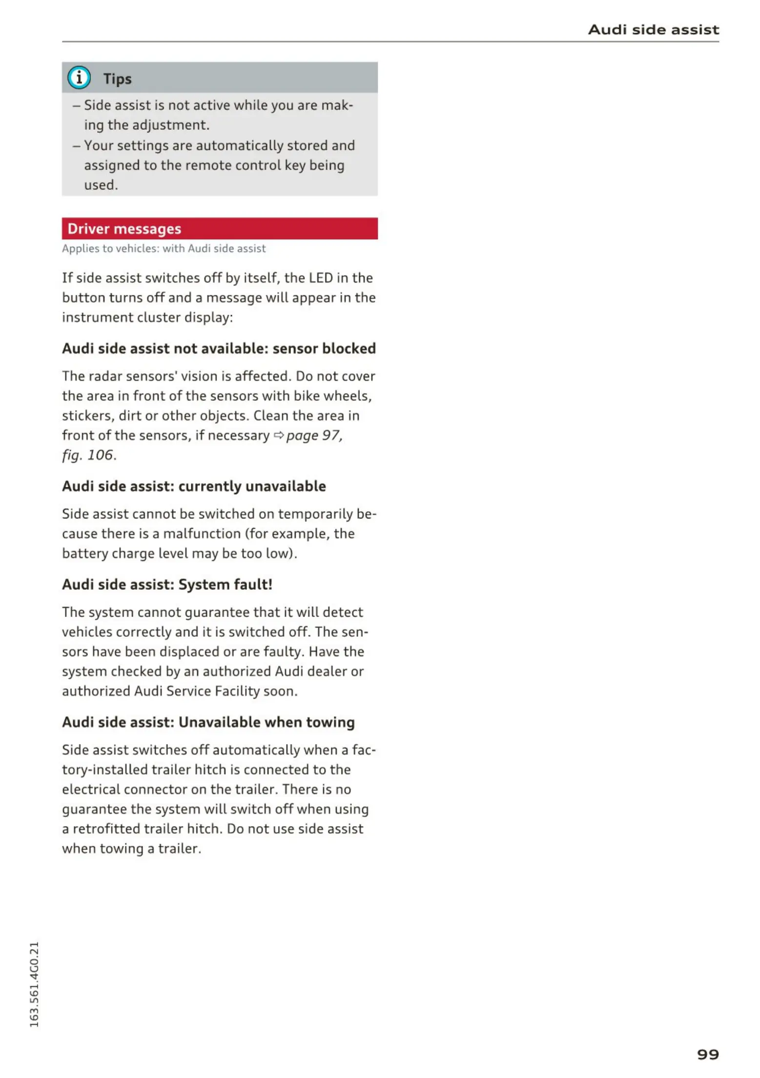 Applies to vehicles: with Audi side assist