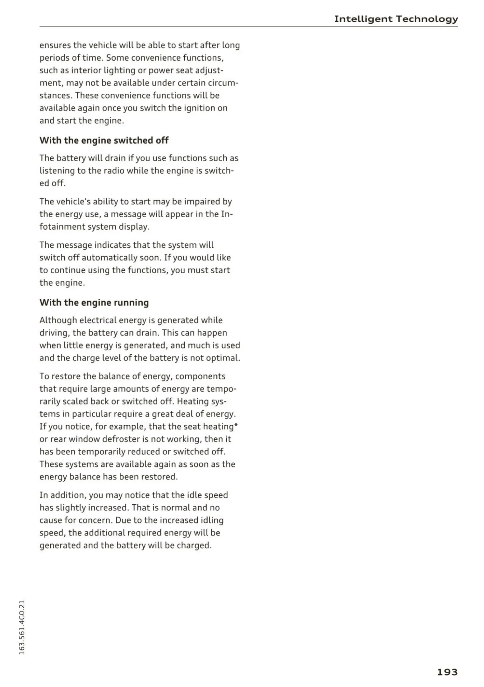ensures the veh icle will be able to start after long