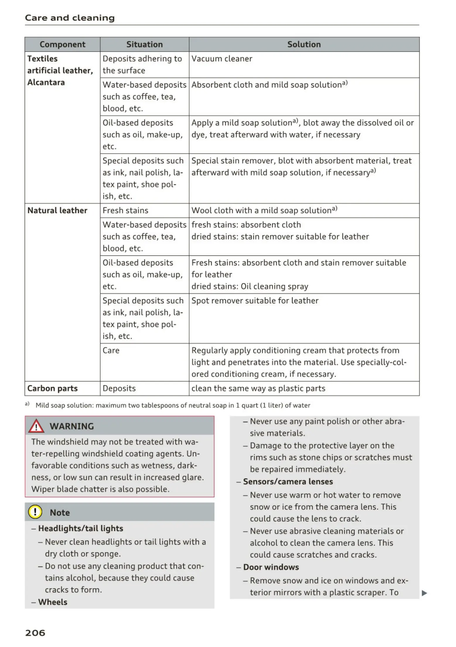 a) Mild soap solution: maxim um two tablesp oo ns of neutral soap in 1 quart (l liter) of water