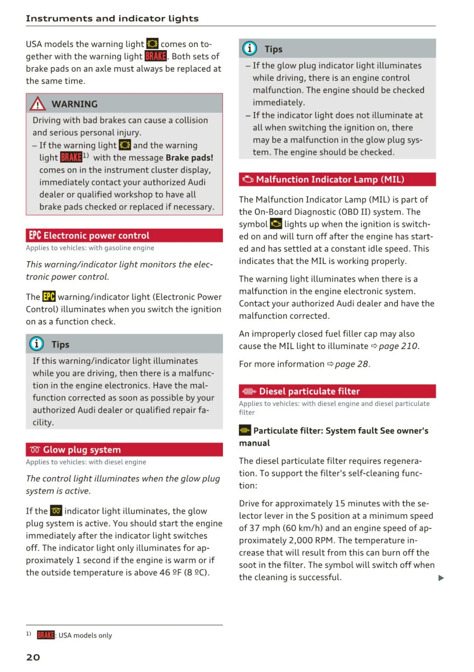 USA models the warning light l'iJ comes on to-