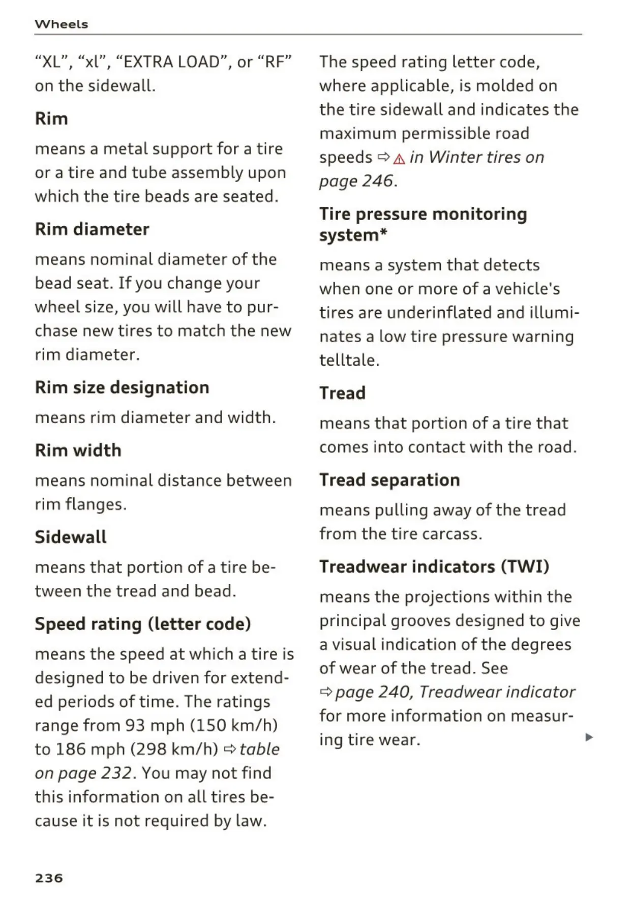 ¢ page 240, Treadwear indicator
