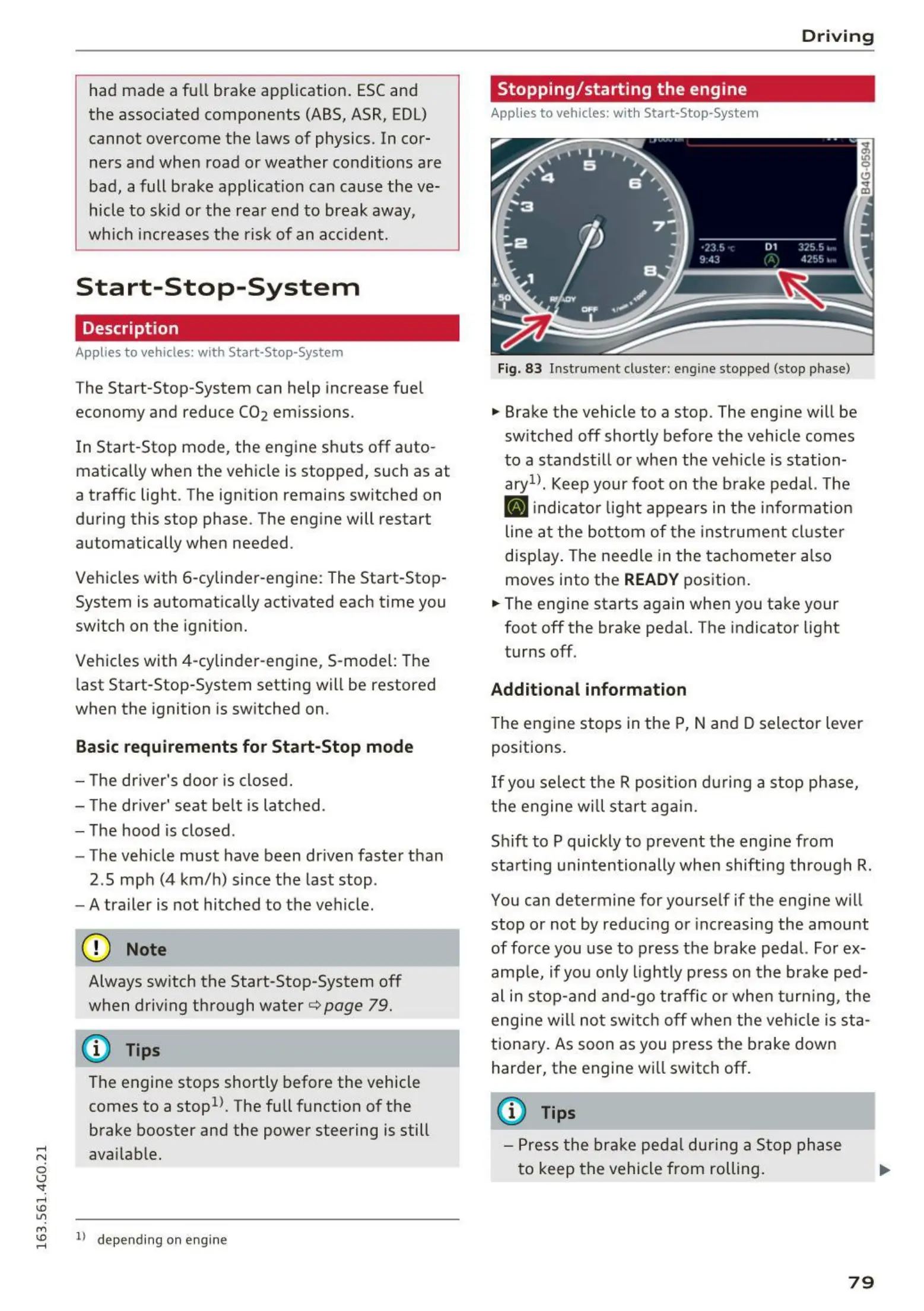 Applies to vehicles: with Start-Stop -System