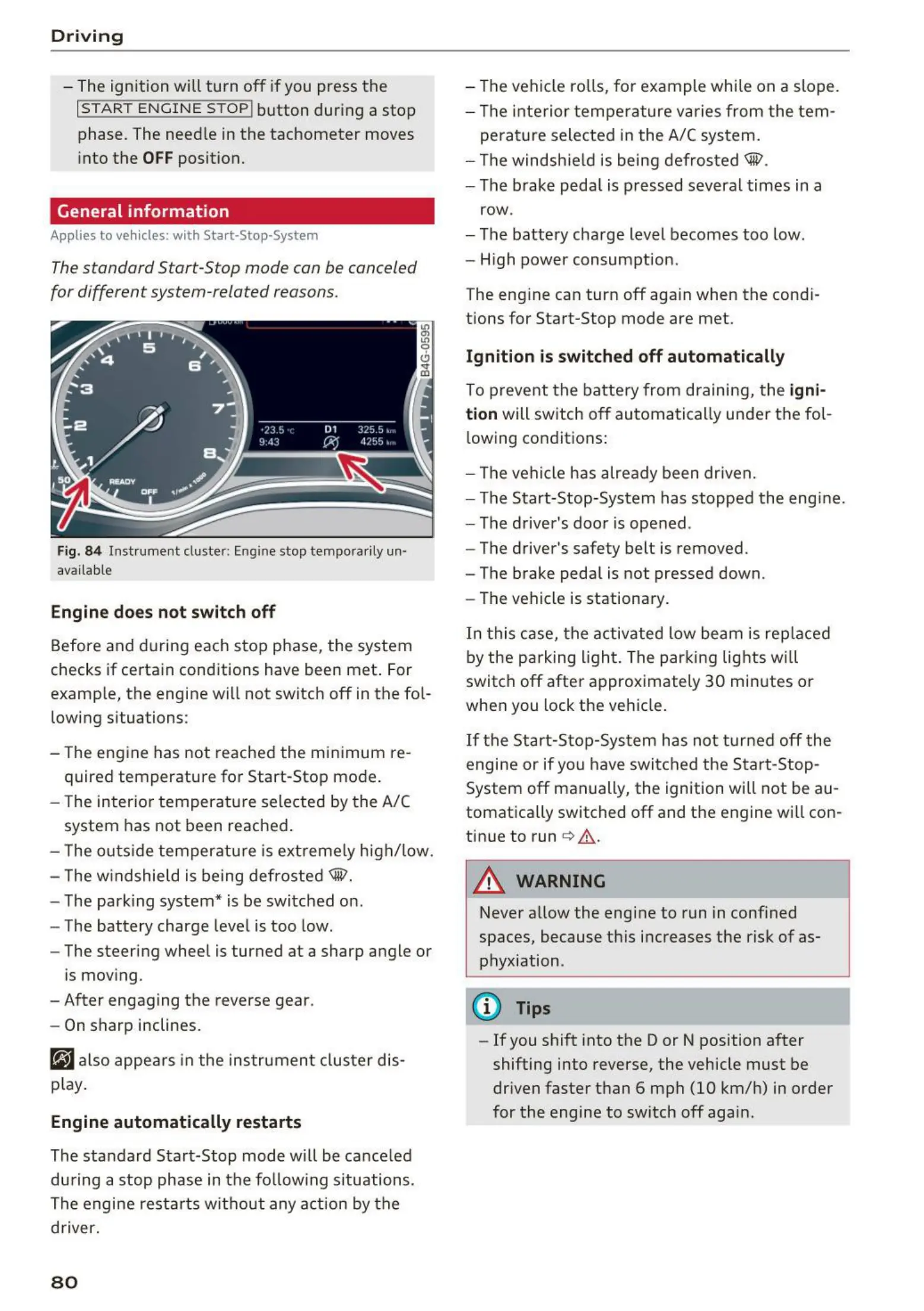 Fig. 84 Instrument cluste r: Engine stop temporarily un·