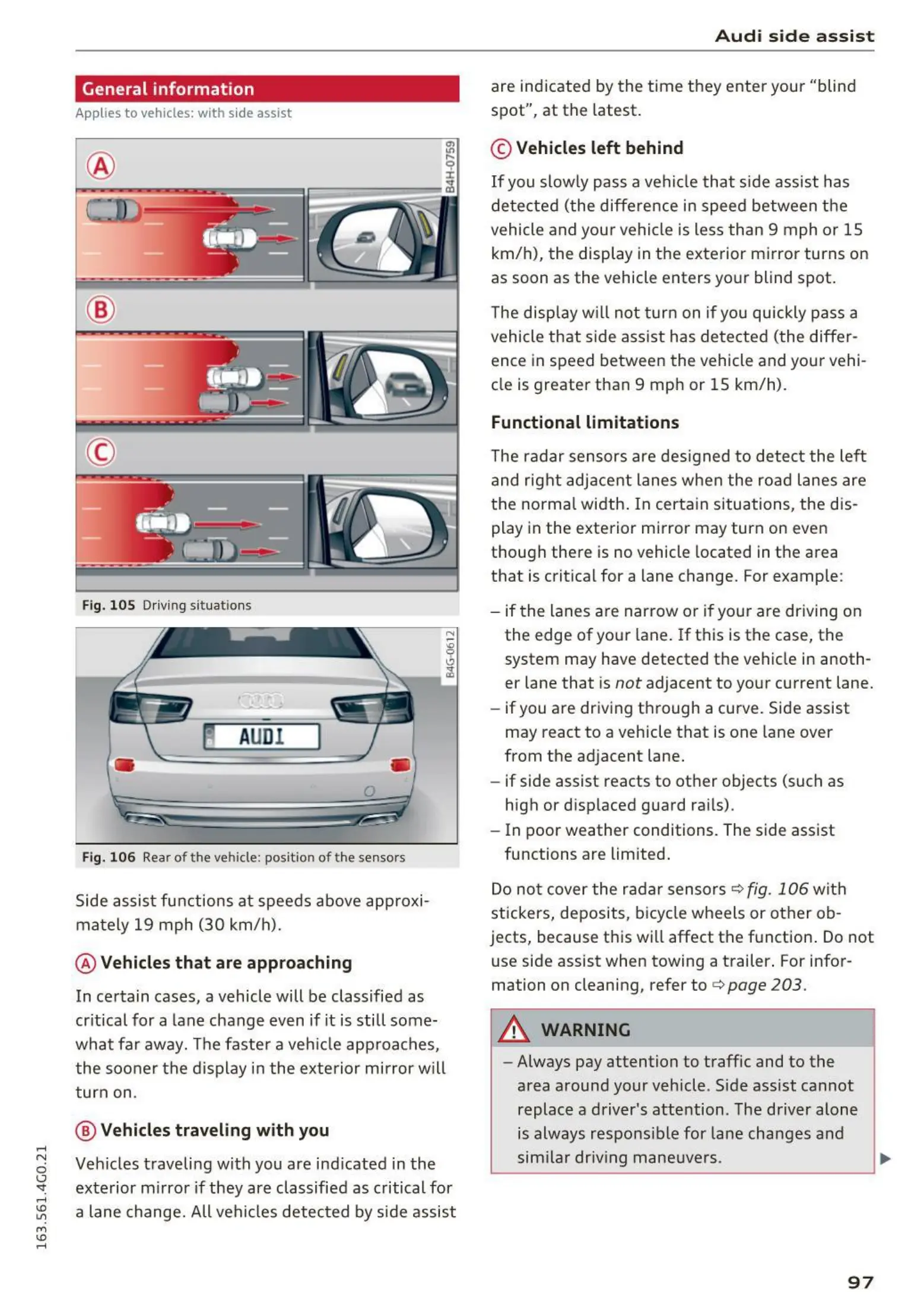 Fig. 106 Rear of the vehicle: position of the senso rs
