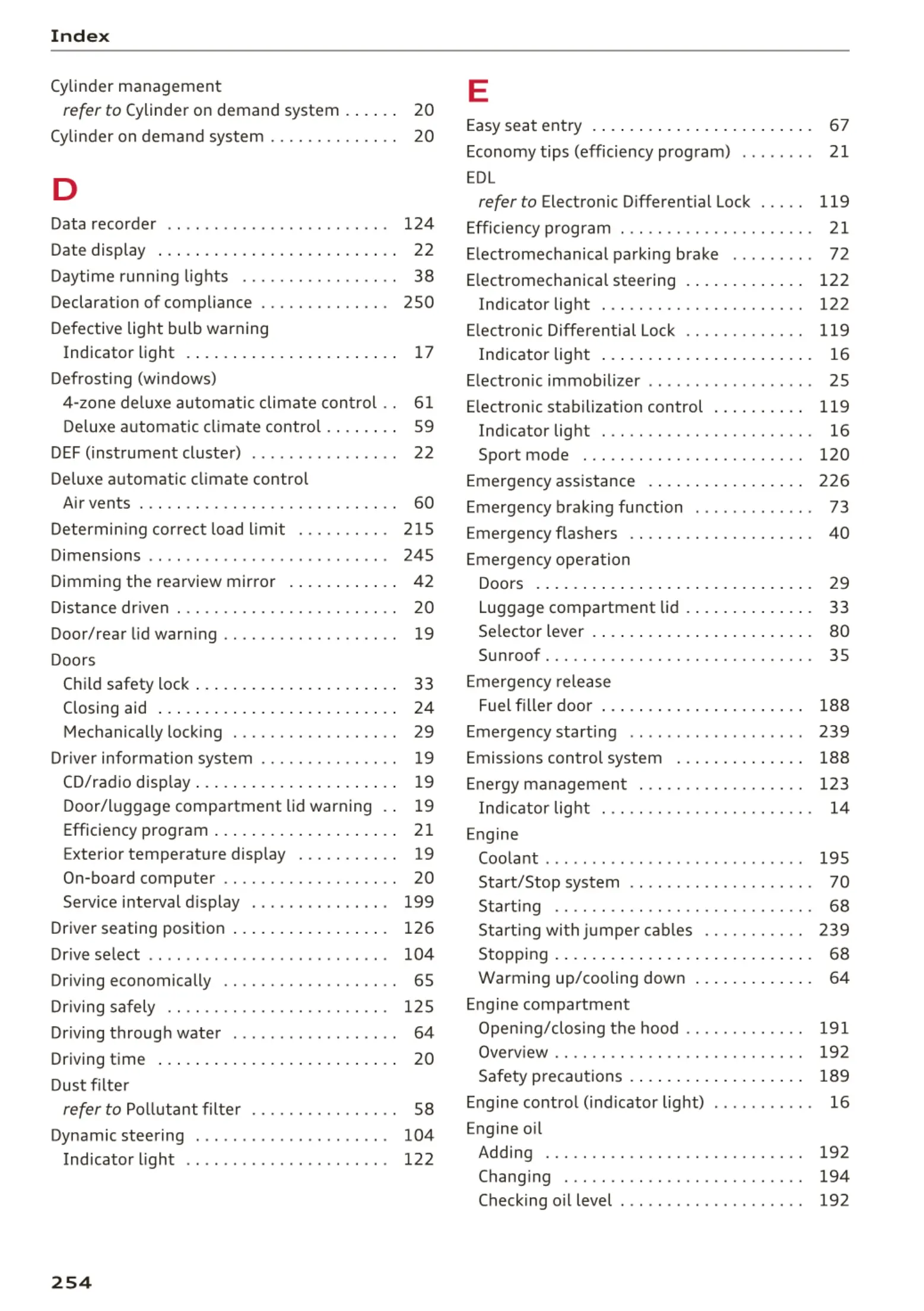 Emergency starting . . . . . . . . . . . . . . . . . . . 239