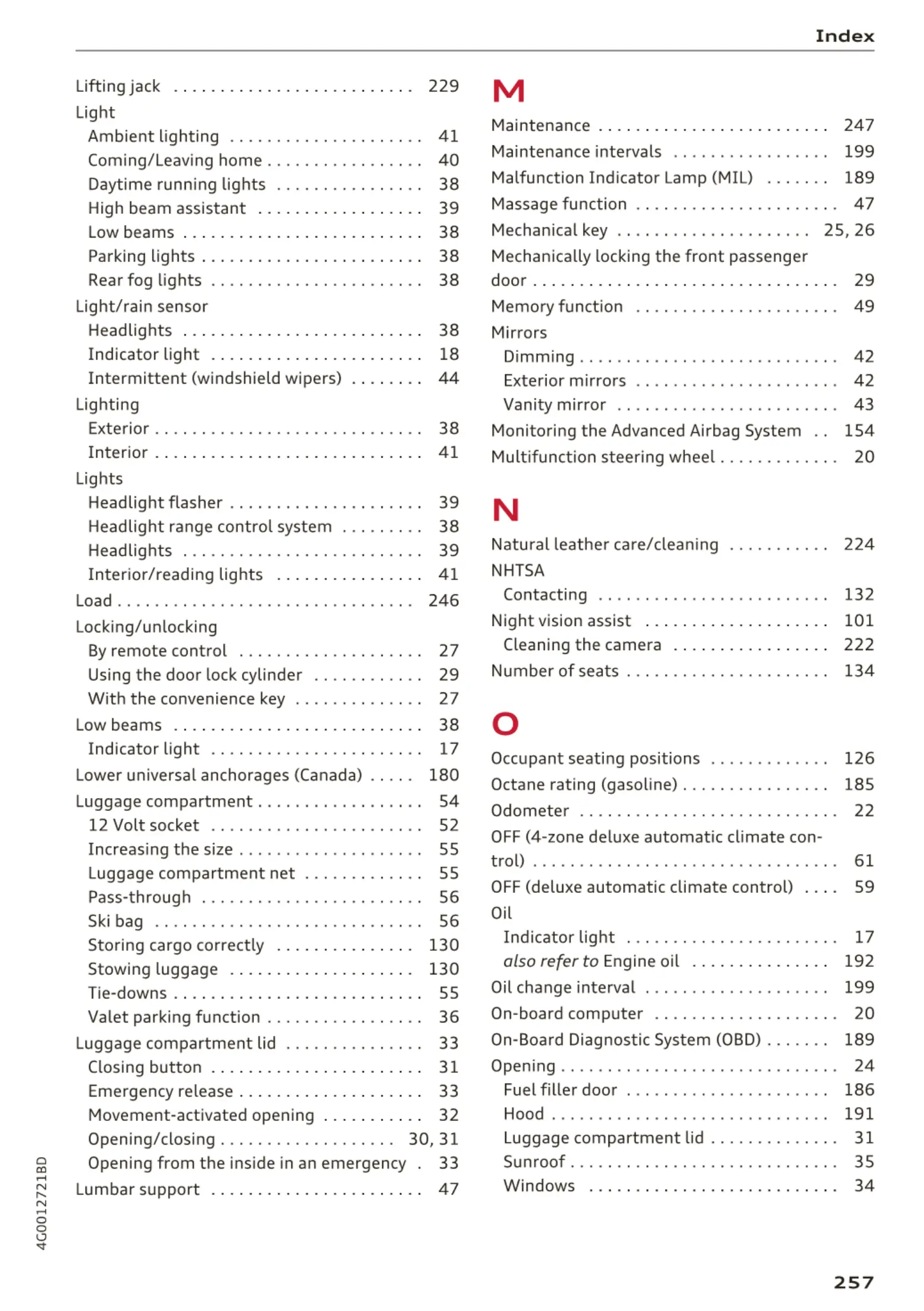 Luggage compartment net . . . . . . . . . . . . . 55