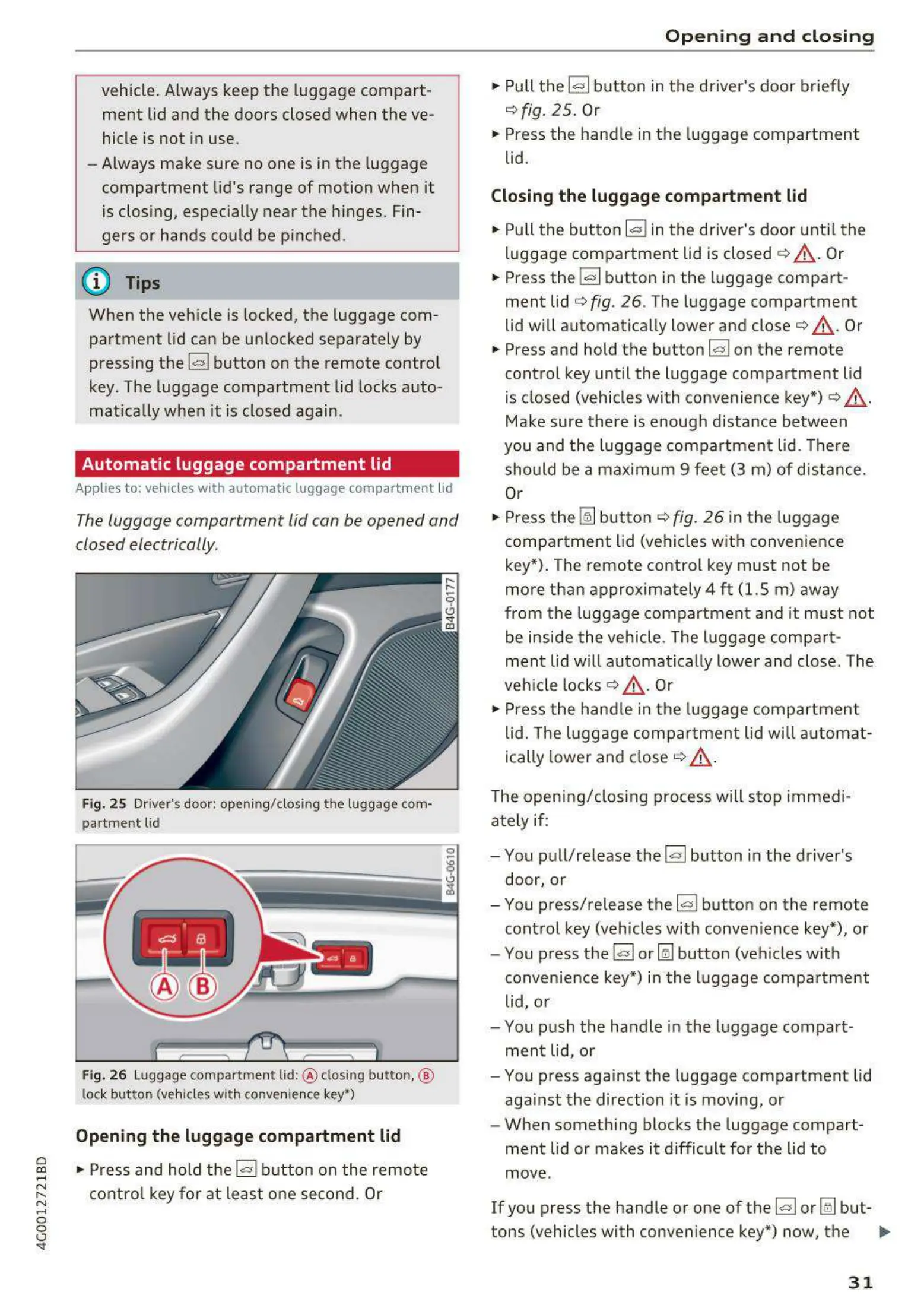 Fig. 26 l ugg age compartment lid : @ closing button , ®
