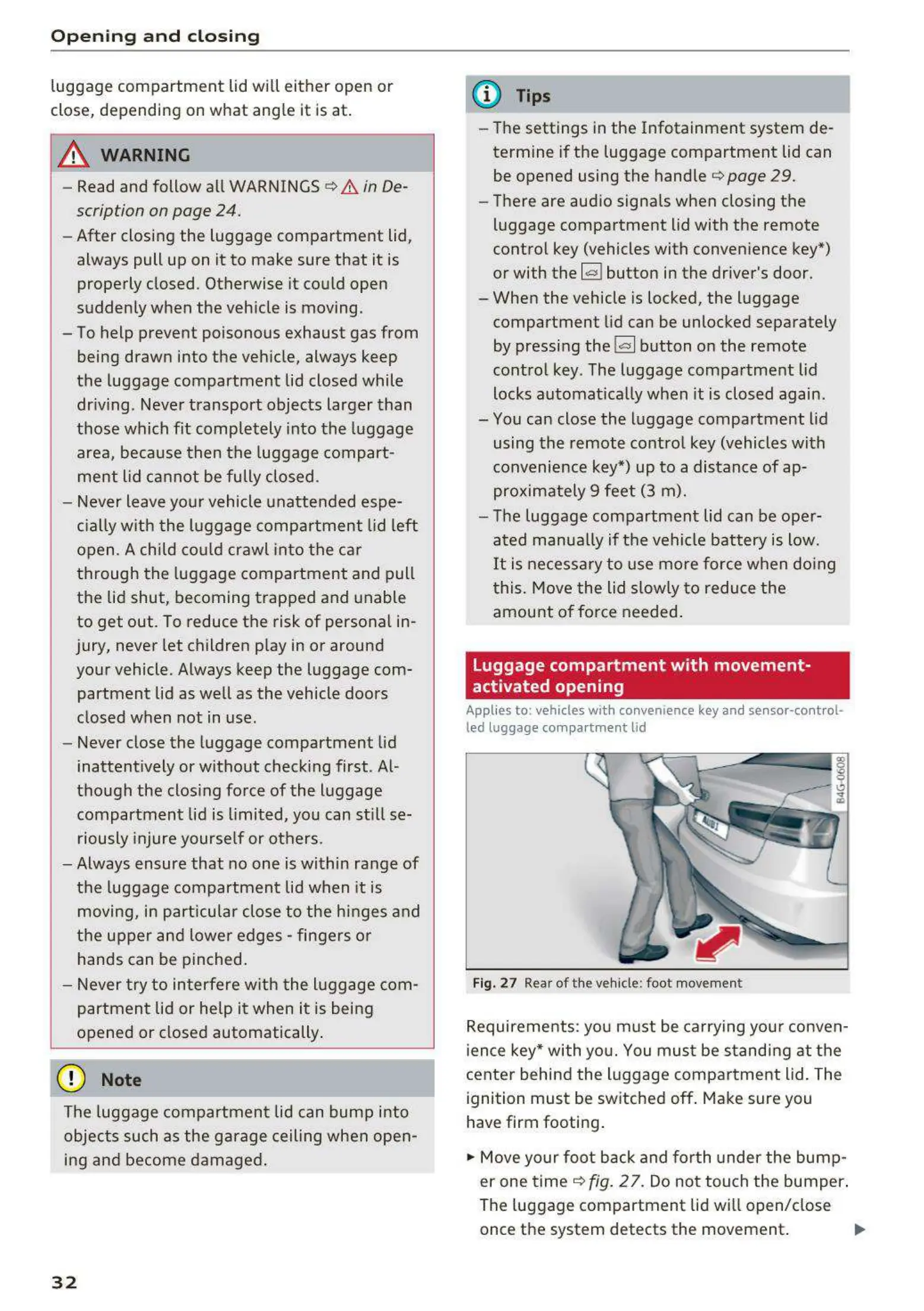 Fig. 27 Rear of the vehicle : foo t movem ent