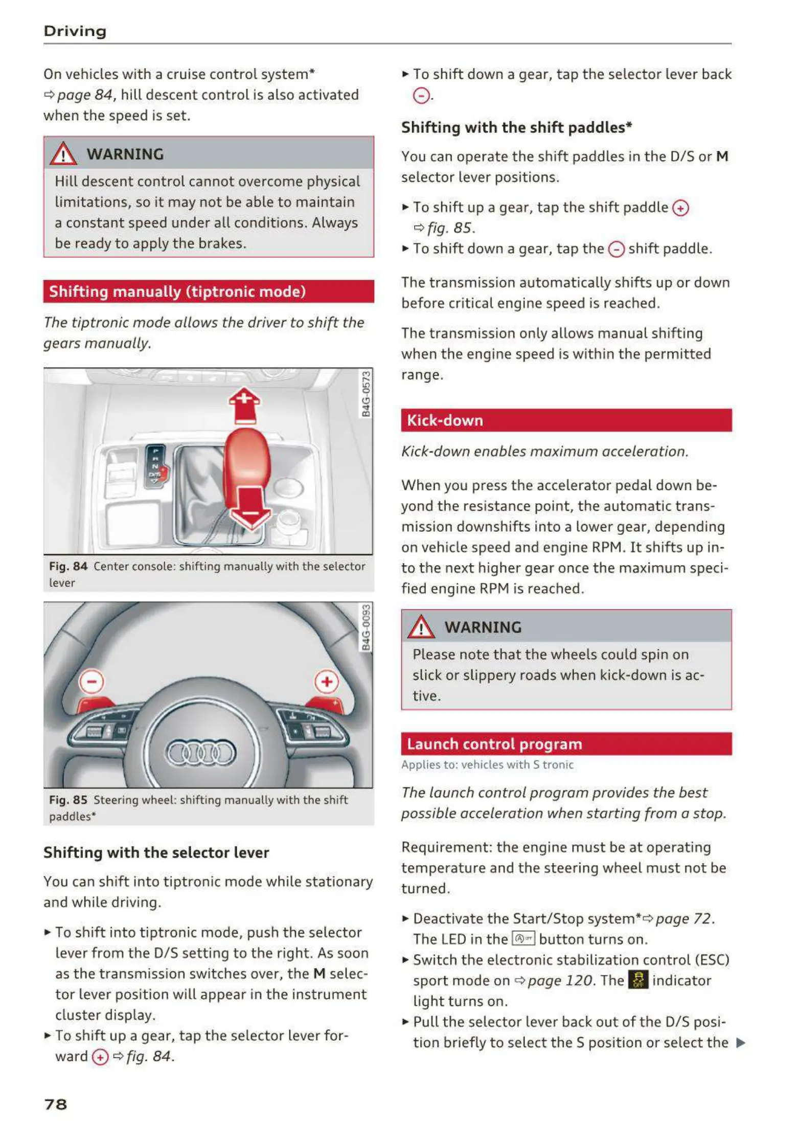 Fig. 85 Stee ring wheel: shifting man ually with the shift