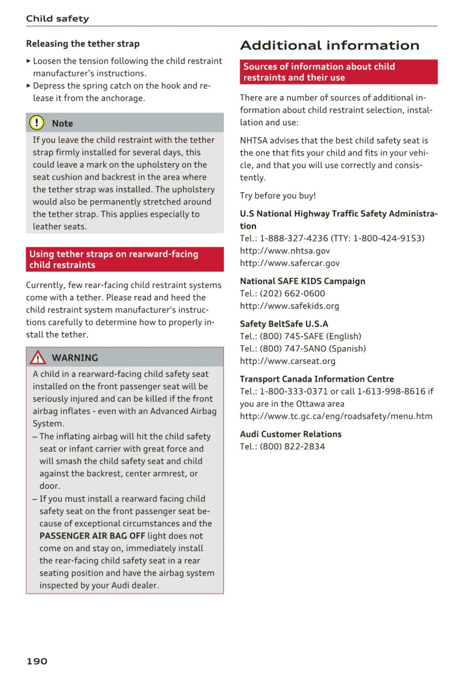 formation about child restraint selection, instal-