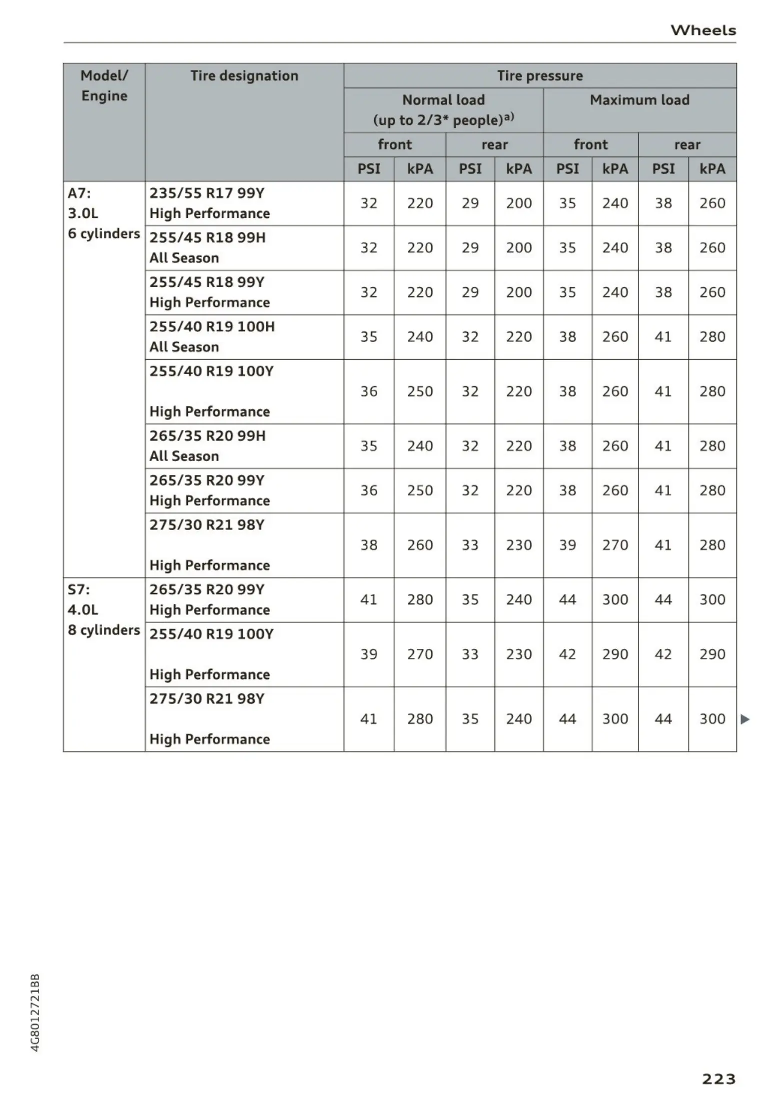 PSI kPA PSI kPA PSI kPA PSI