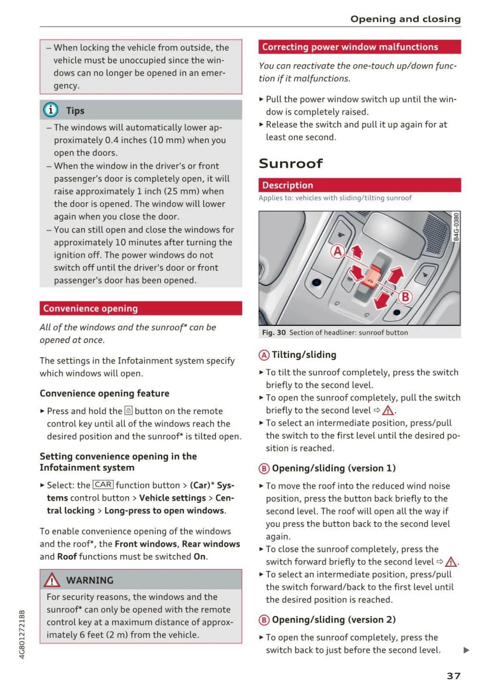 Fig. 30 Sect ion of head liner: sunroof butto n