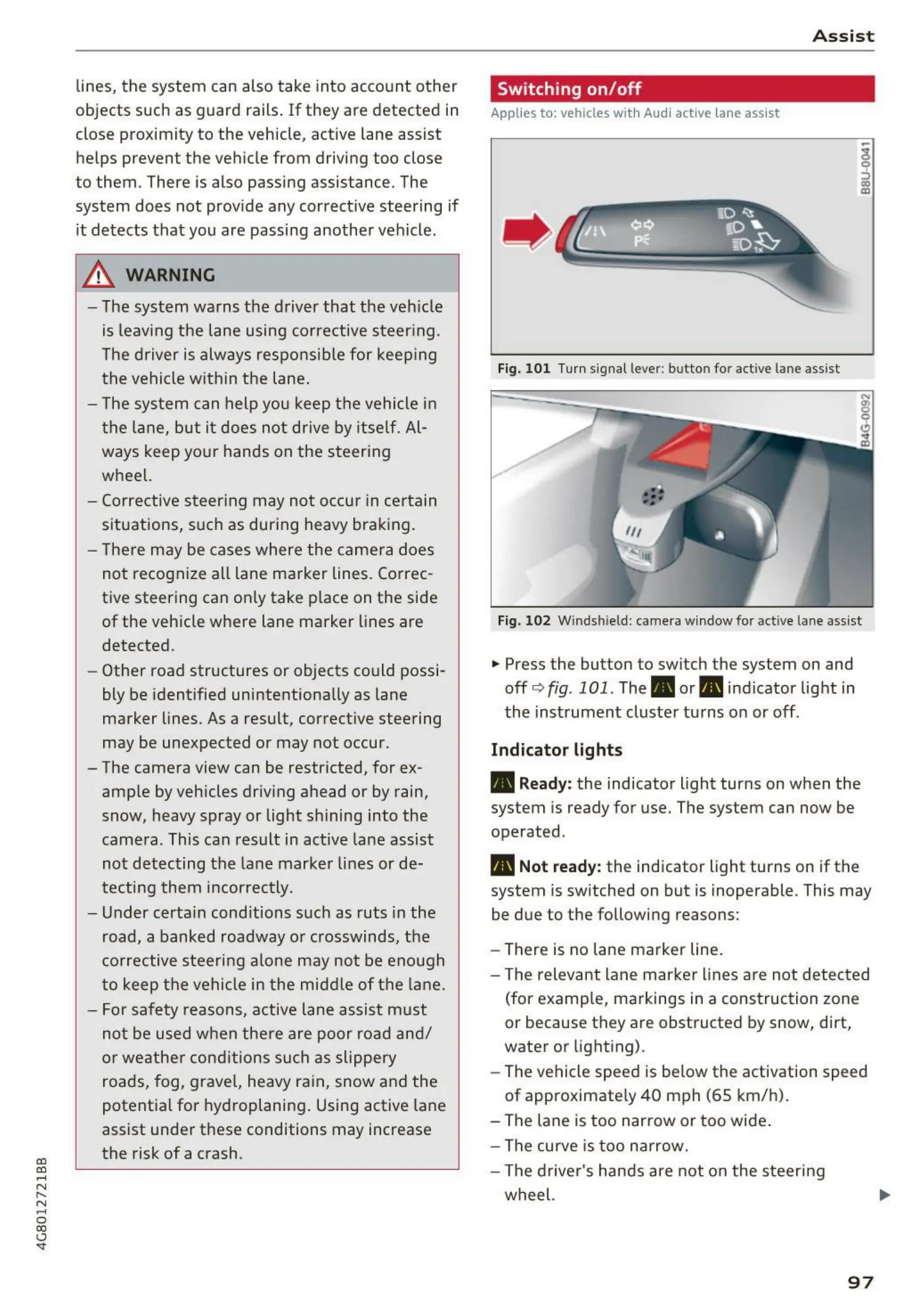 Applies to : veh icles wit h Aud i act ive lane ass ist