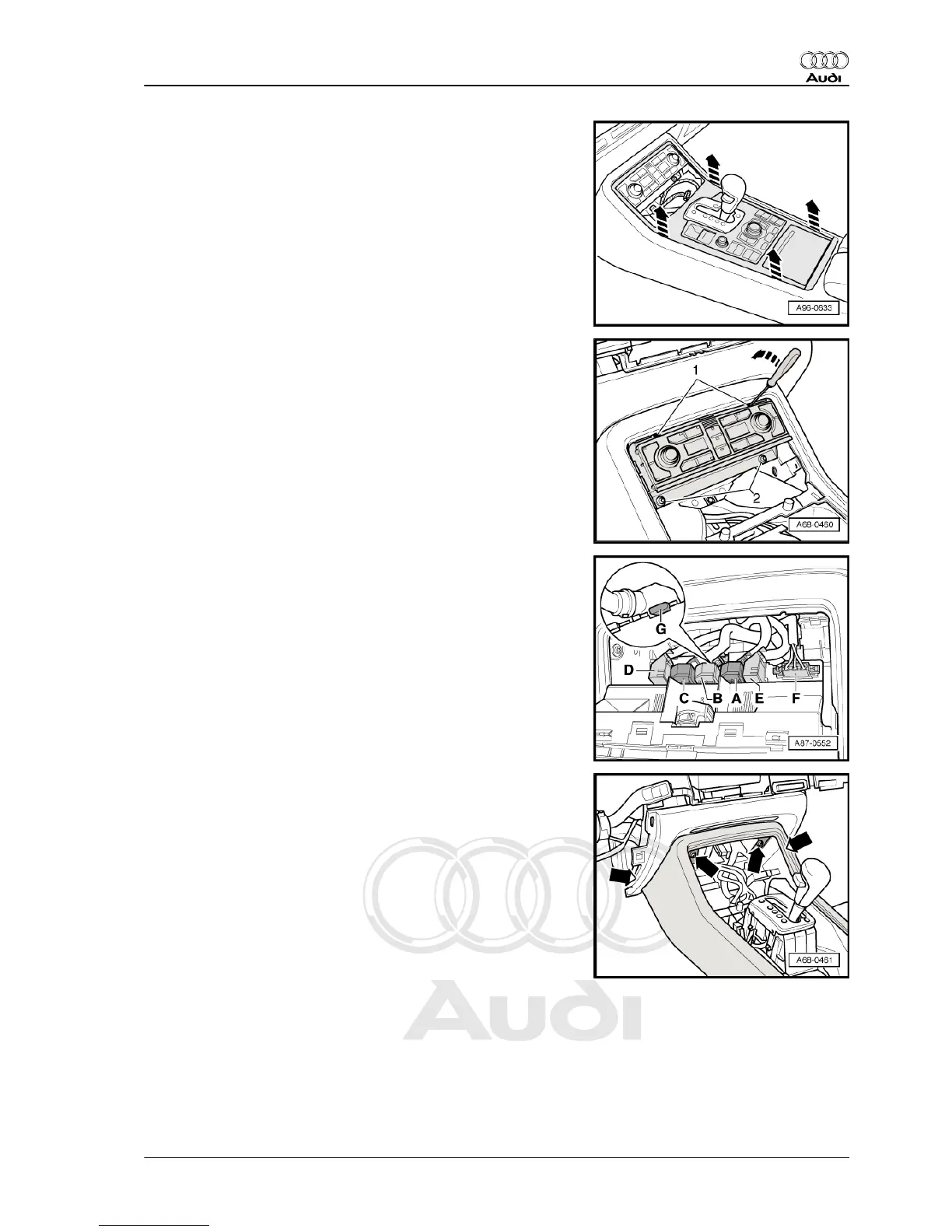 – Unplug electrical connectors -A ... E- by releasing retaining tab