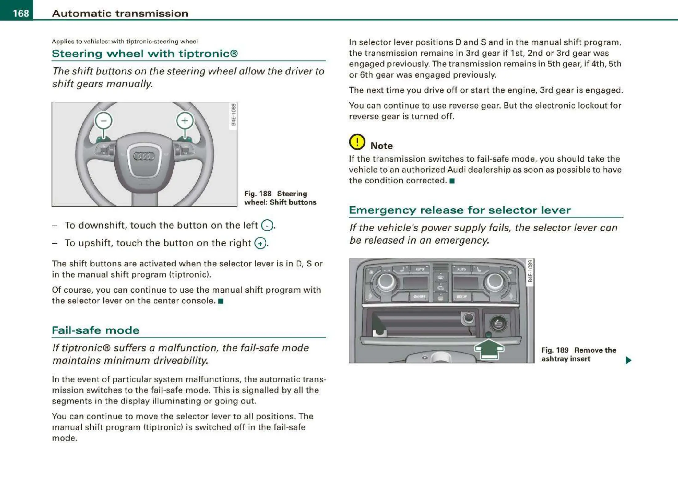 manual shift program (tiptronic) is switched off in the fail-safe