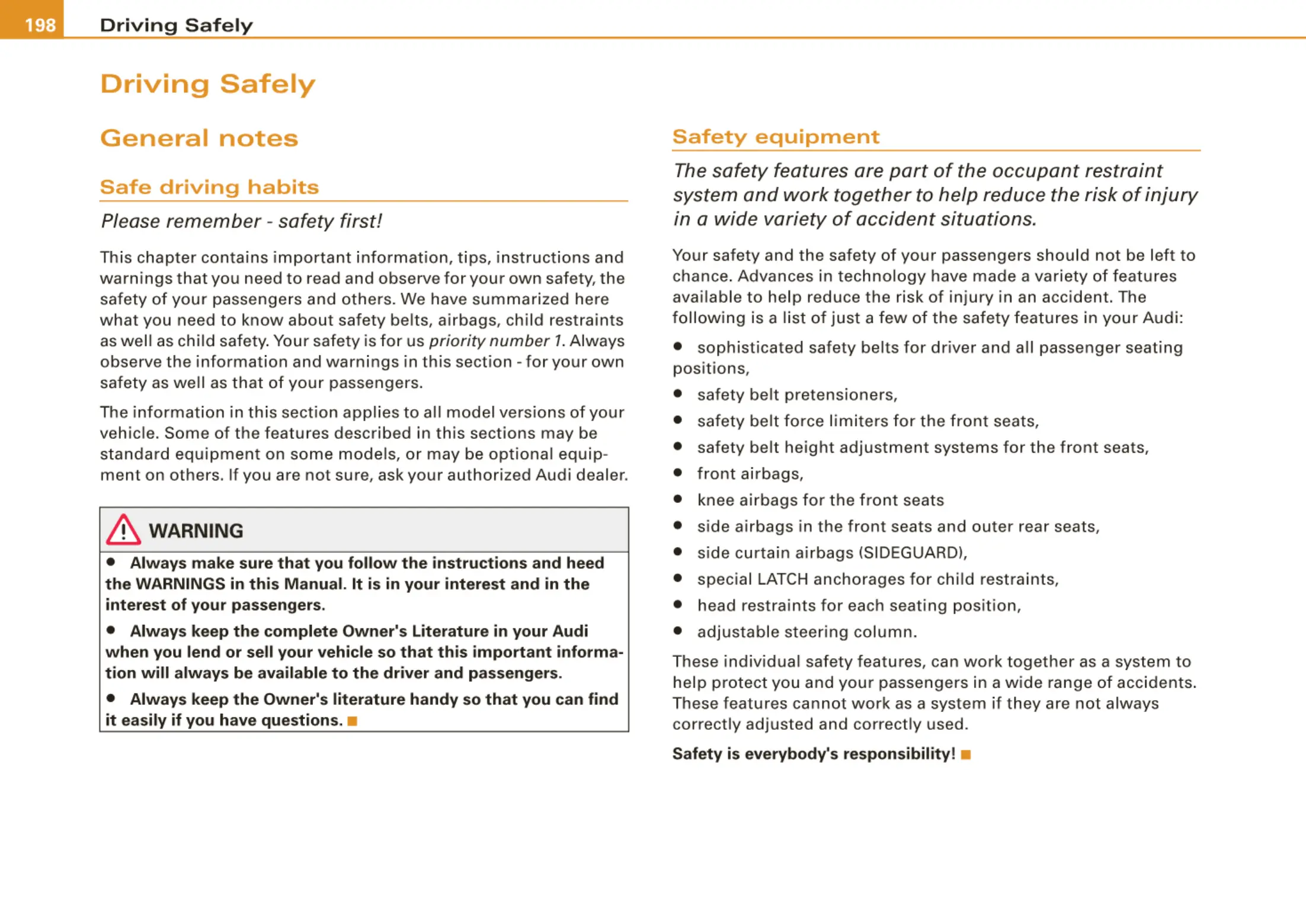 • Alway s keep the complete Owner' s Literature in your Audi