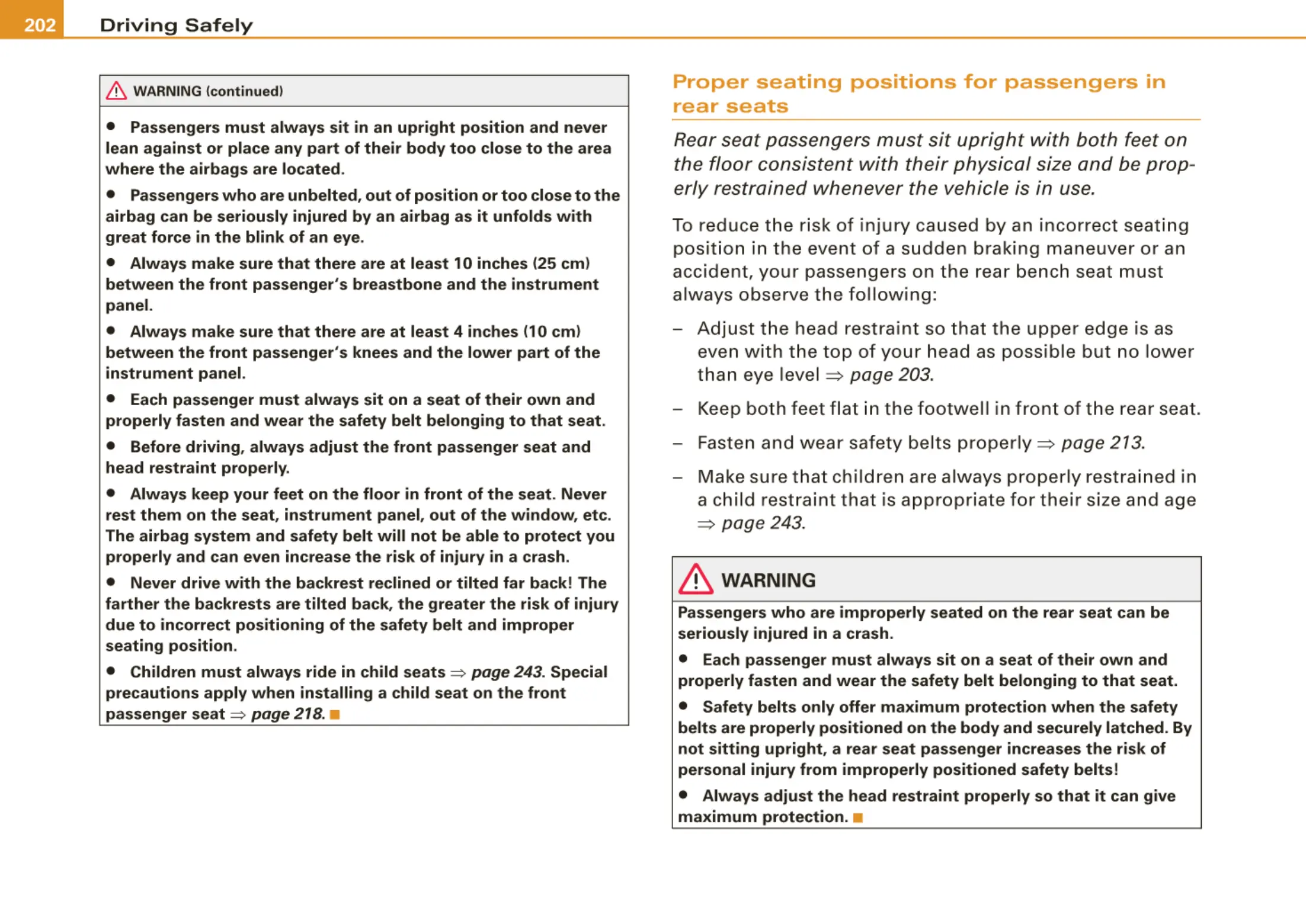 Proper seating positions for passengers in