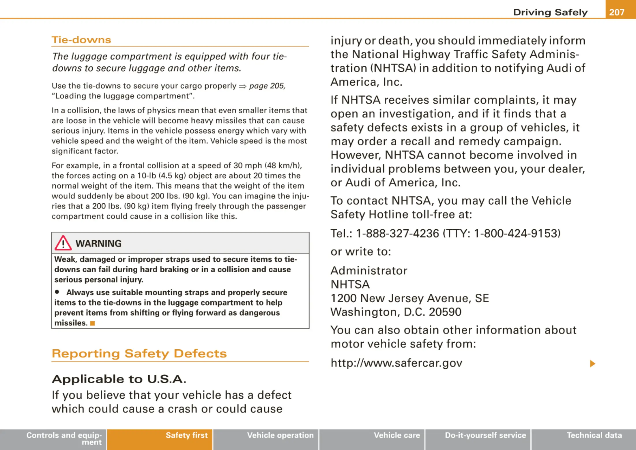 tration (NHTSA) in addition to notifying Audi of