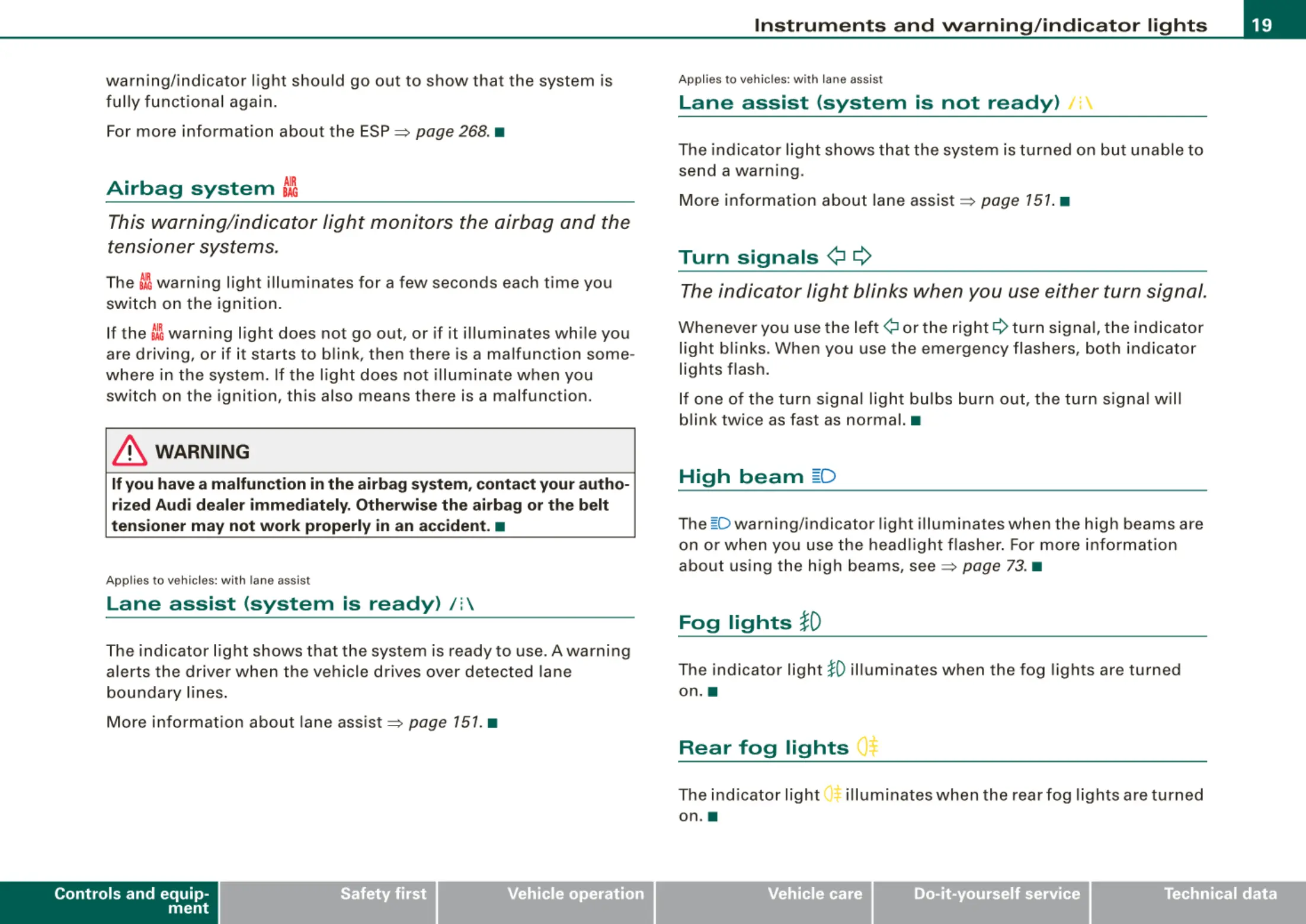 rized Audi dealer immediately. Otherwise the airbag or the belt