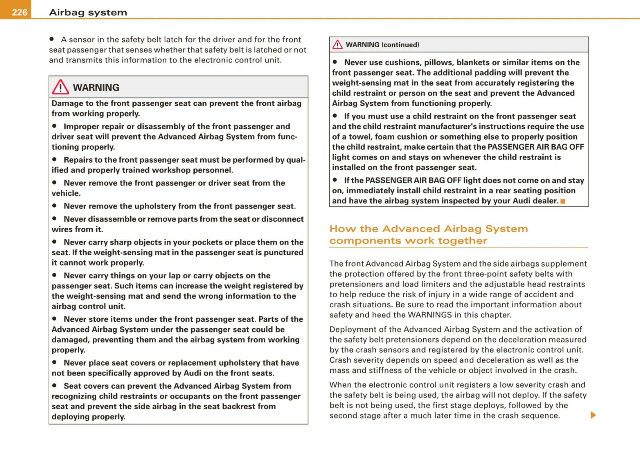 The front Advanc ed Airba g Syst em and th e side airba gs supplement