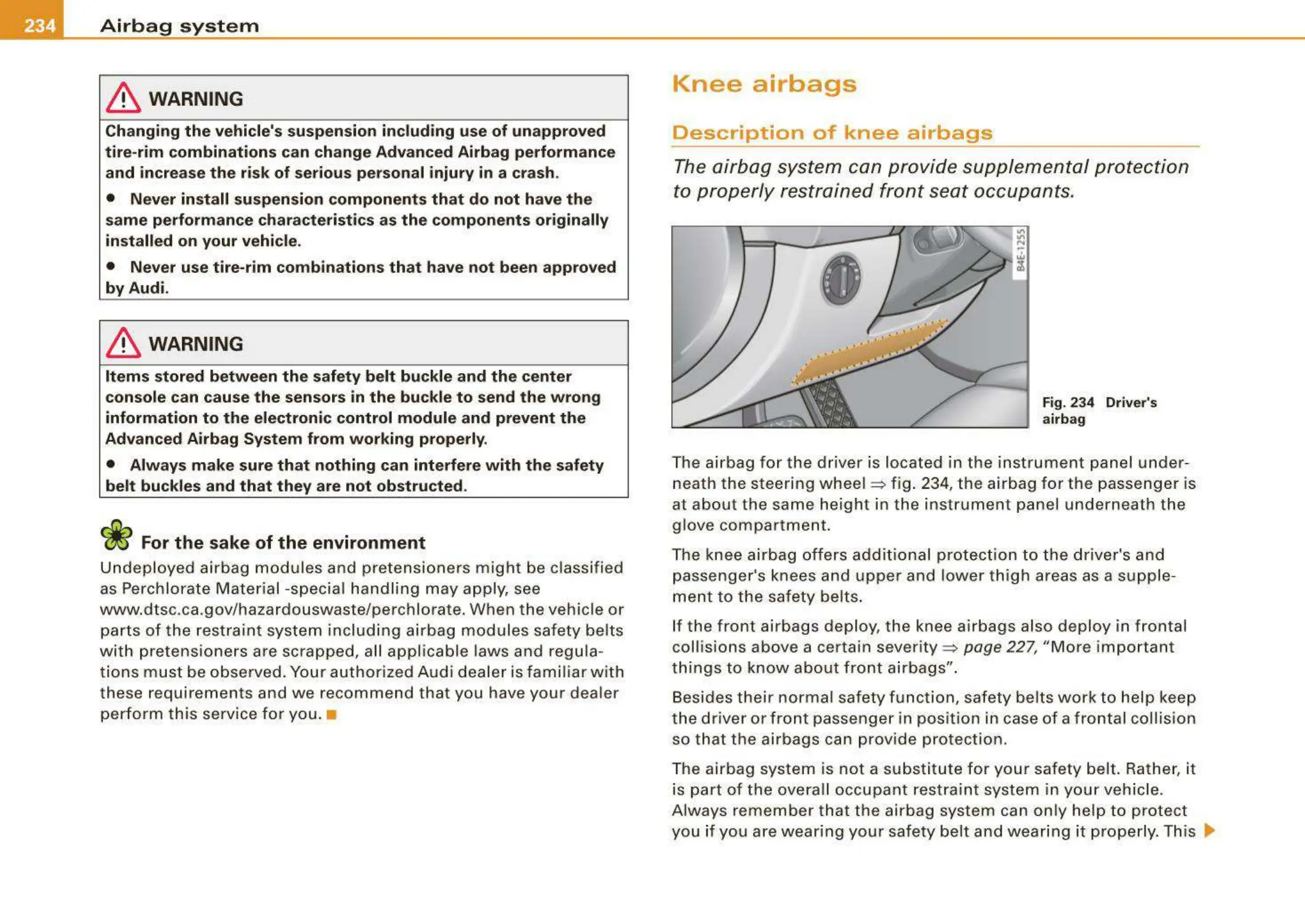 neath the steering whee l => fig . 234, the airbag for the passenger is