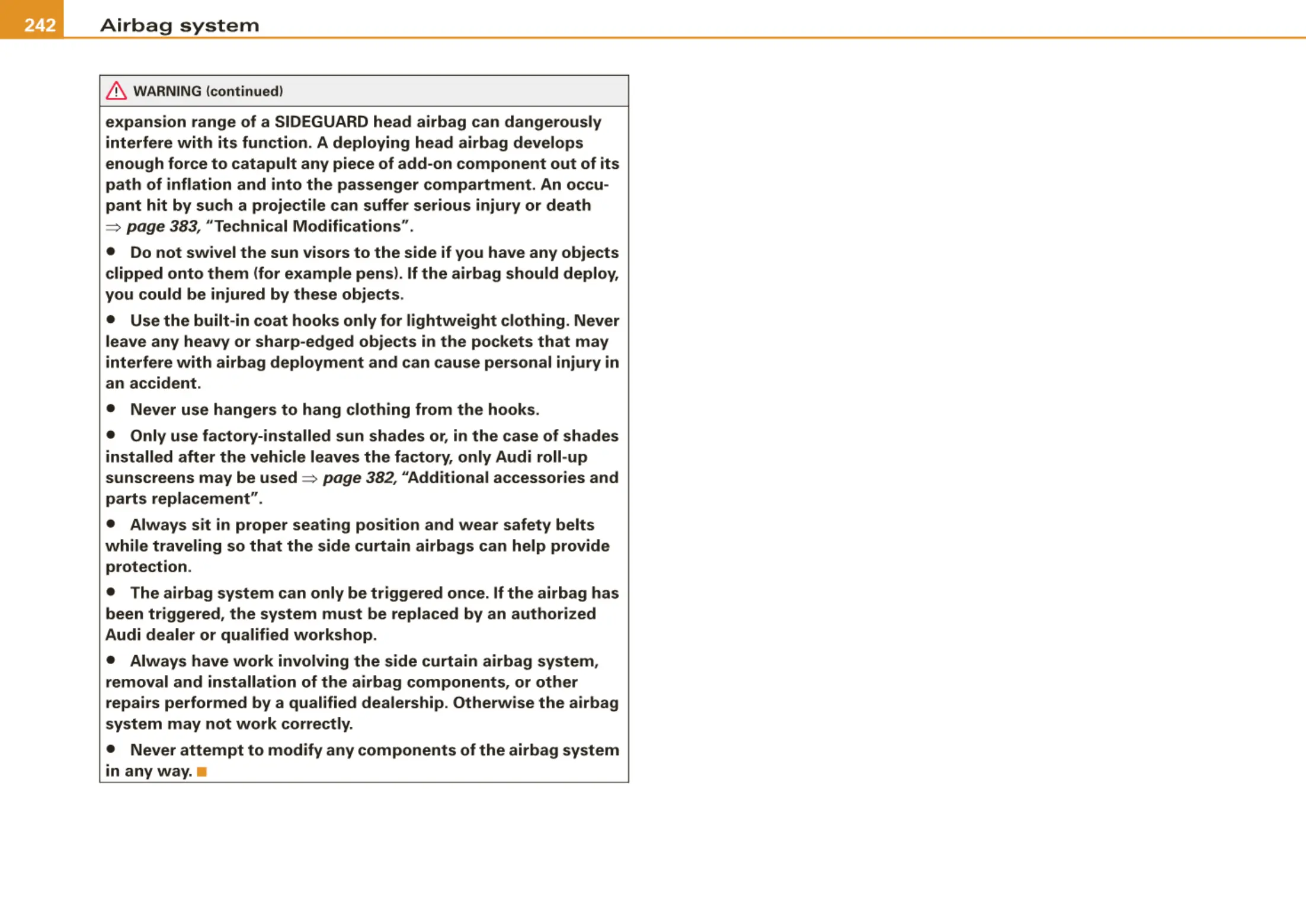 • The airbag system can only be triggered once. If the airbag has