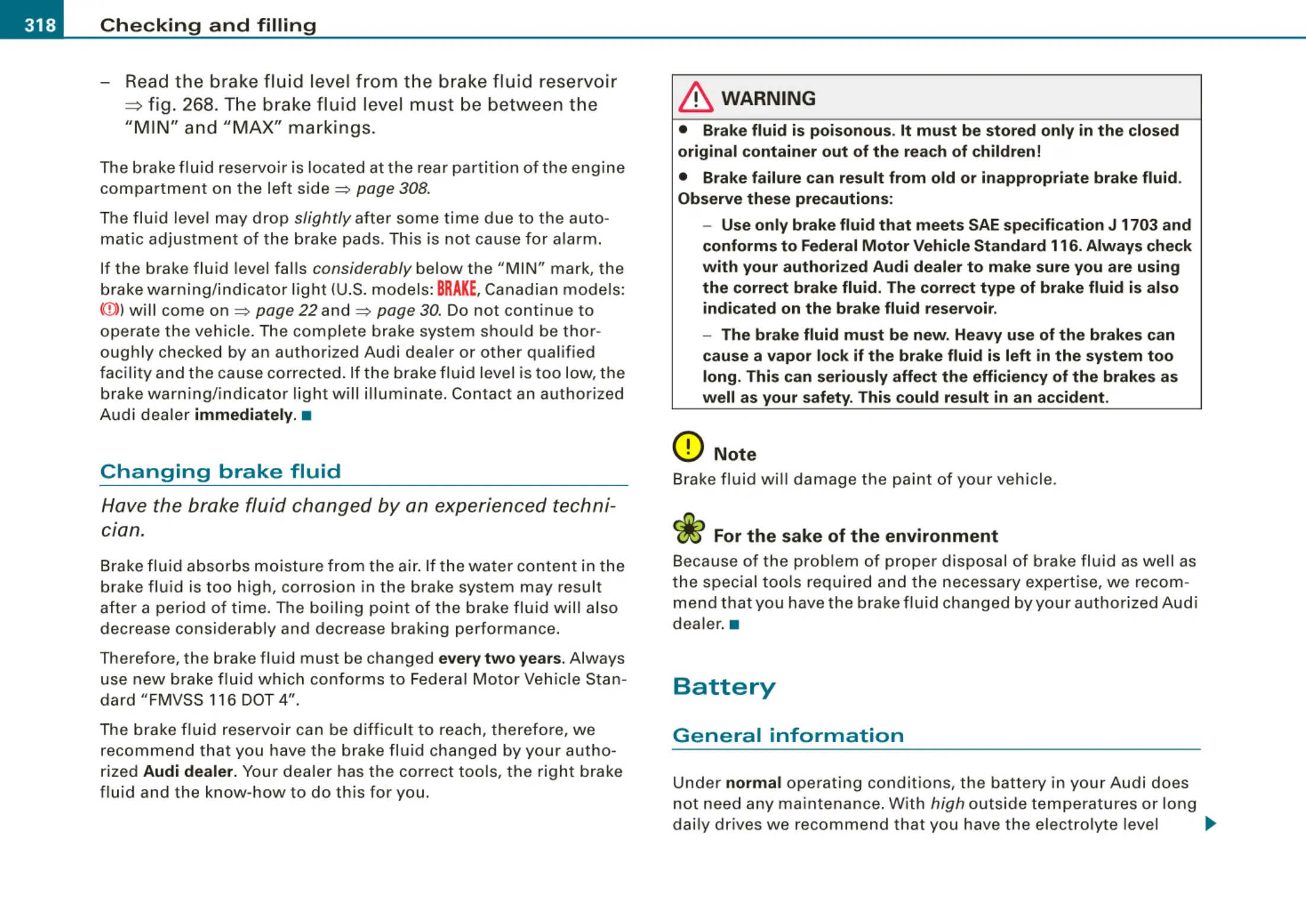 use new brake fluid which conforms to Federal Motor Vehicle Stan-