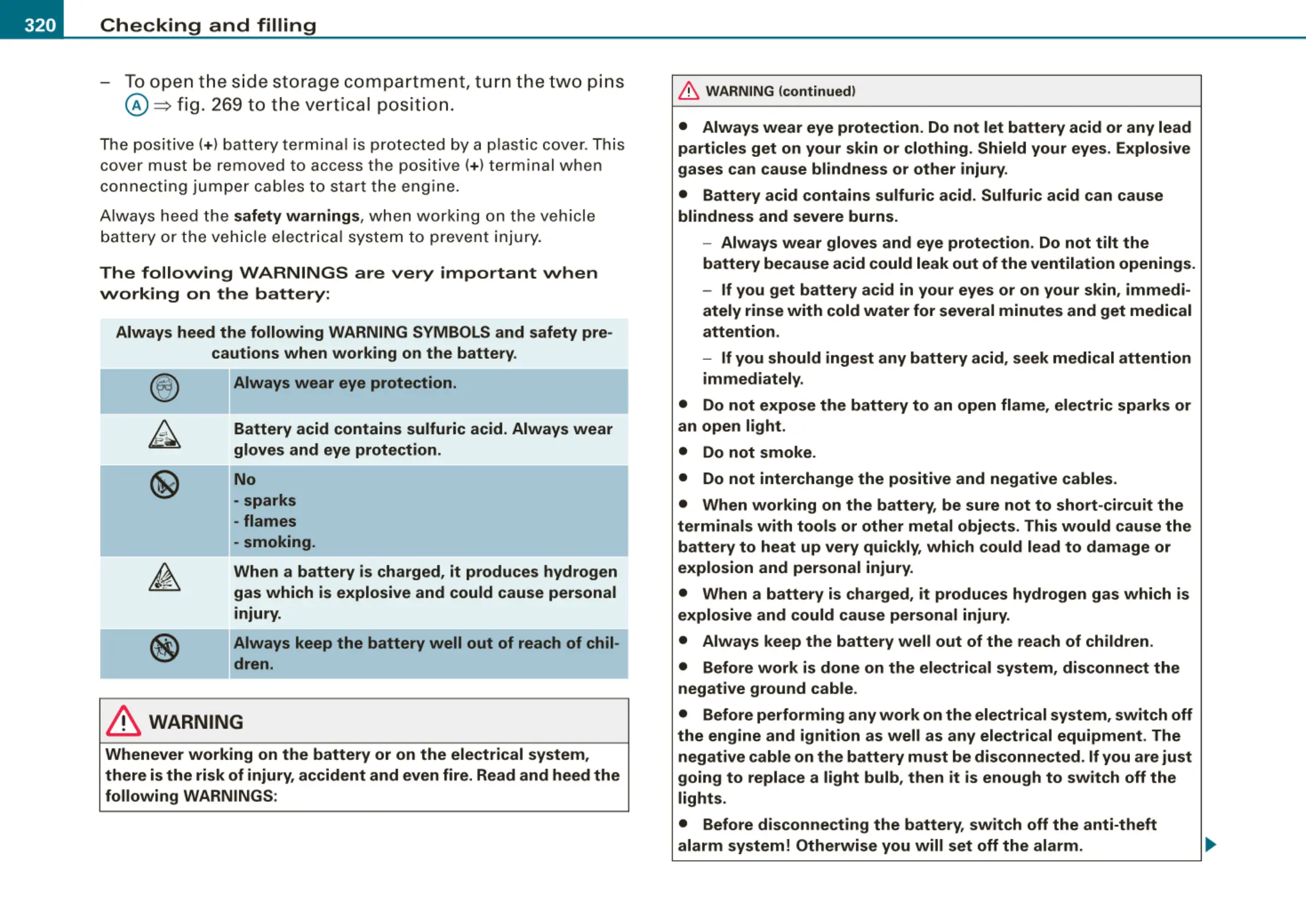 • Battery acid contains sulfuric acid. Sulfuric acid can cause