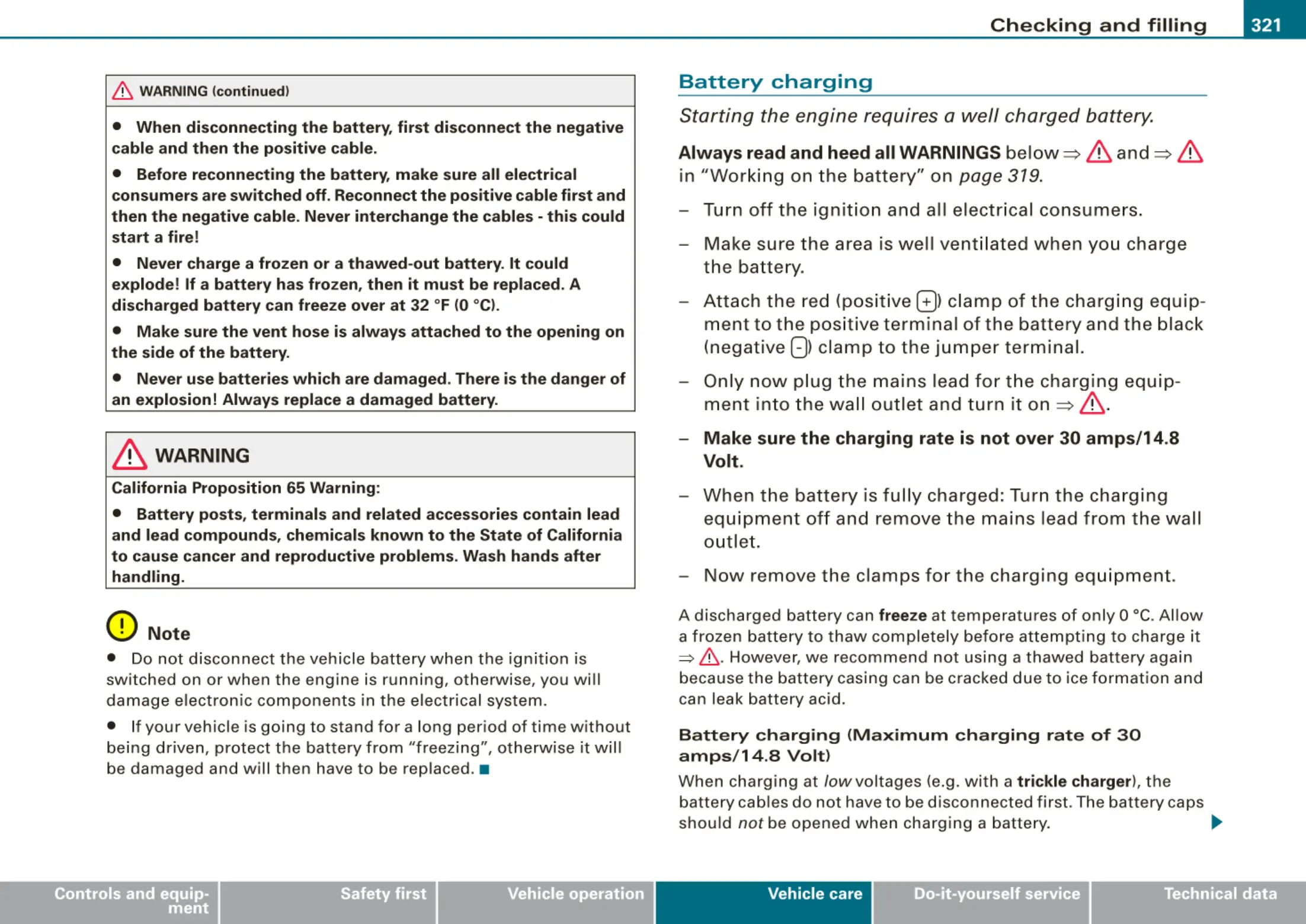 consumers are switched off. Reconnect the positive cable first and