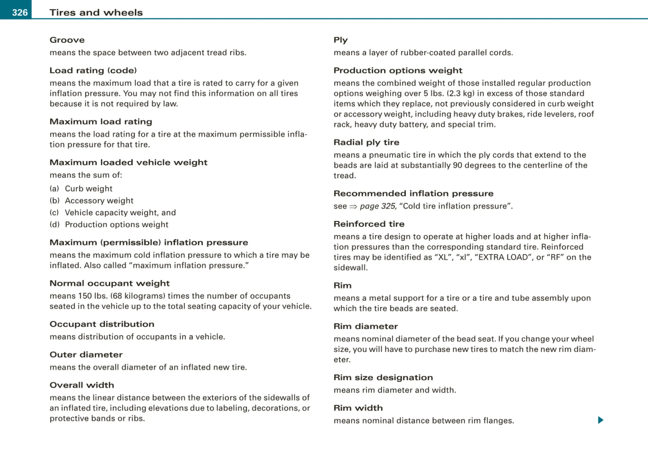 see :::::> page 325, "Cold tire inflat ion pressure".