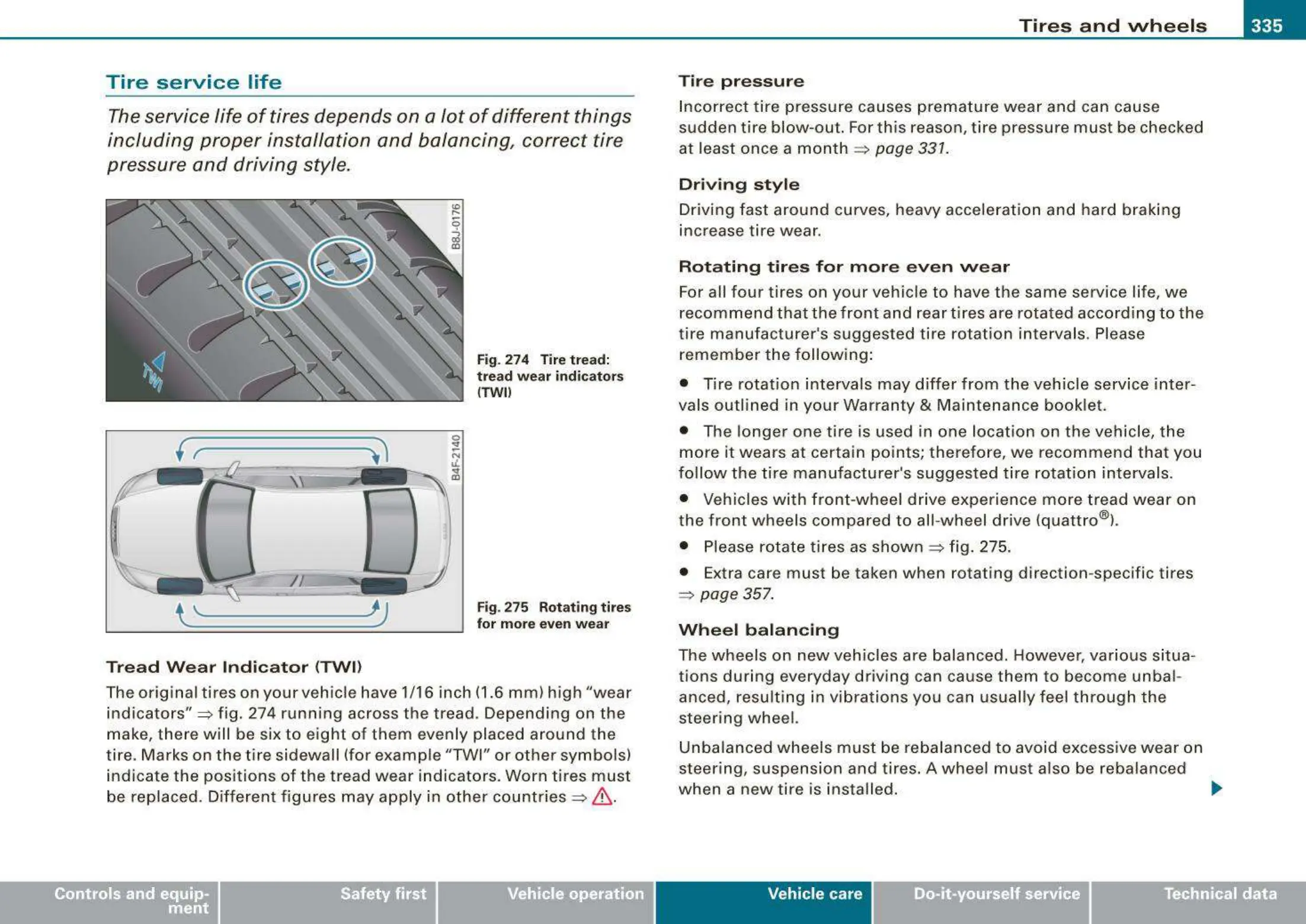 tire. Marks on the tire sidewall (for example "TWI" or other symbols)