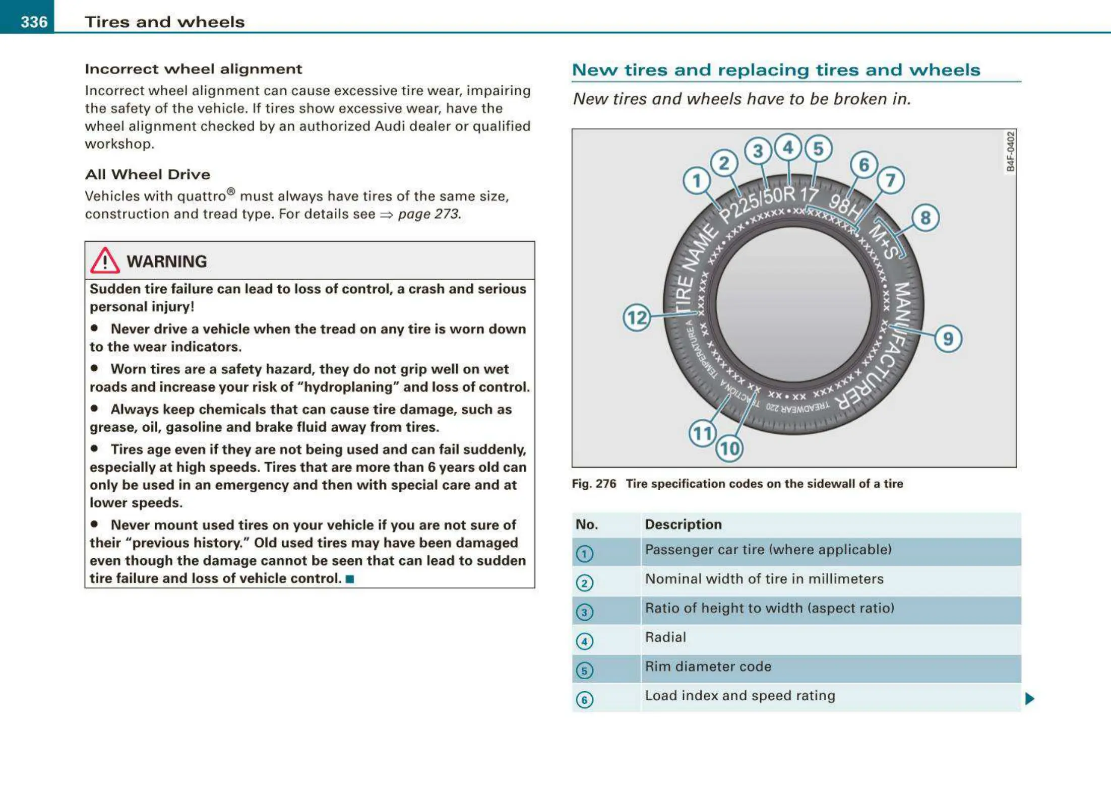 Fig. 276 Tire specification code s on the s idewall of a tire